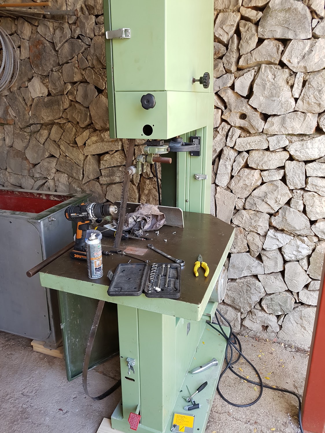 Boyan I think I had one of those but a bit bigger mine would cut 300mm no prob. if I remember it was a brake to stop the band saw the knob on the back is to adjust the top wheel to align the blade from coming off.