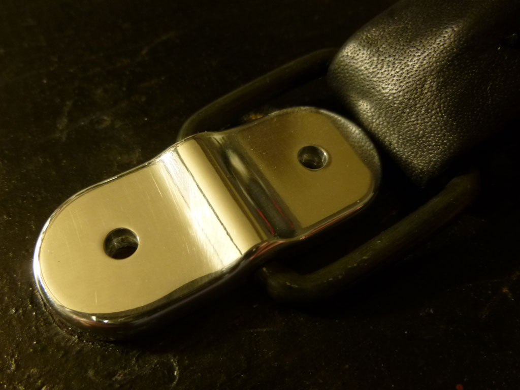 Tool marks were polished out on my press-drill using a sisal mop then a white-stitch. Not sure whether to counter sink and try and get hold of some nice dome topped wood screws, or to drill out and use domed socket head machine screws secured from the other side with dome nuts... While I'm here - why's it impossible to buy decent quality, aesthetically pleasing wood screws on the high street..? I always have to get mine on-line, spending a couple of quid on the screws and then a fiver on delivery. Heh, it's well annoying! Anyway, here it is, the finished item along with a nice new leather handle. Really chuffed that I've been able to give this old box another few years of use.
