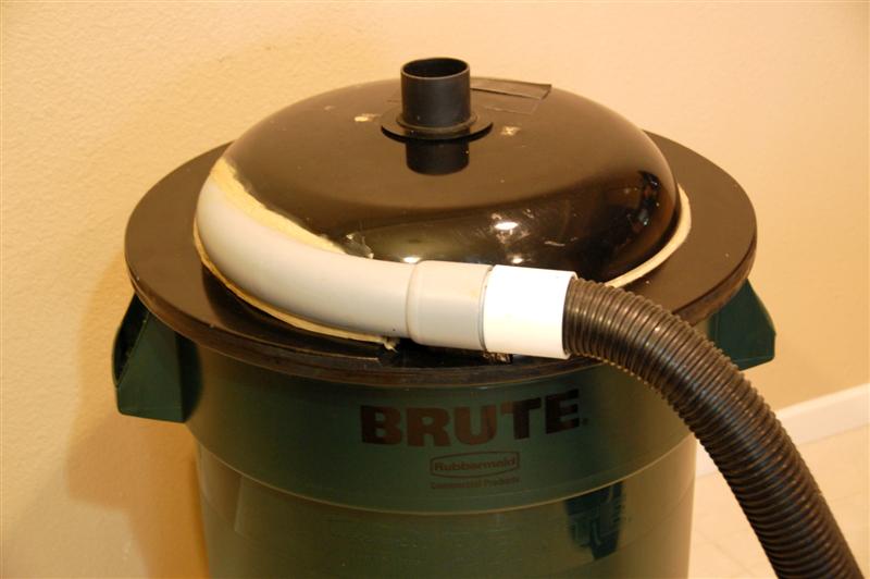 As to the original problem, the issue I suspect will be that the cyclonic separator you have is simply not man enough for the job. The cyclone works on a similar principle of imparting angular momentum to the dust and the conic portion helps maintain the angular velocity of the vortex as the dust falls. It is VERY efficient. However the problem is that if the saturation of dust and chips in the incoming air is too high then there isn't enough energy in the vortex to throw it all outwards and you end up with dust being sucked through the centre because it can't be thrown against the side. You simply have too much dust going into too small a conic section.