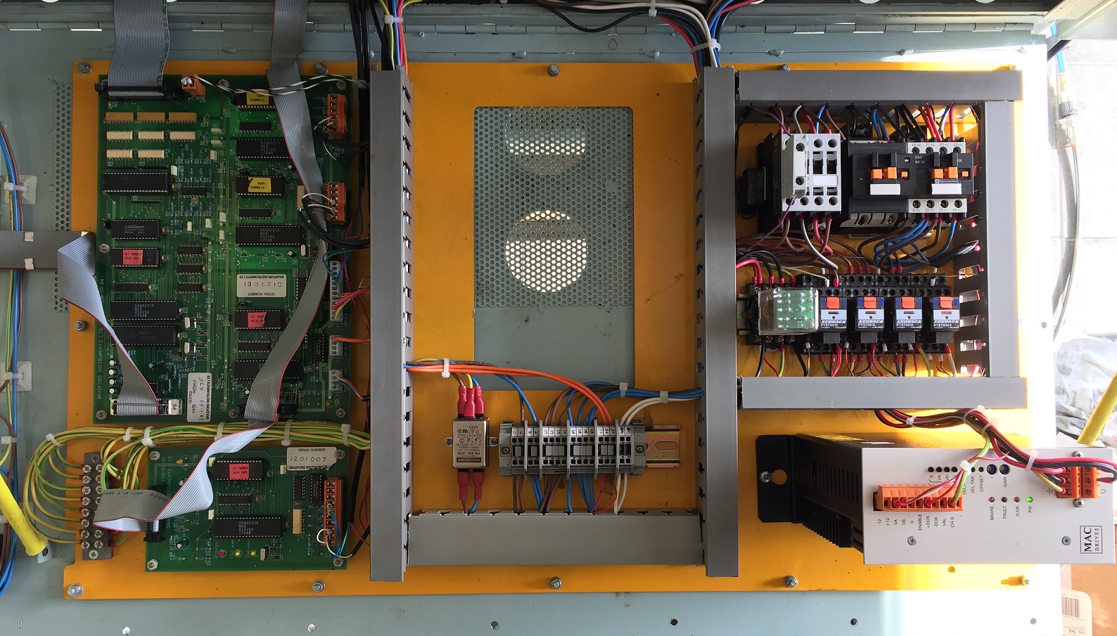 Originally, the VMC300 is equipped with Ametek MAE HS200-3424-0170 Nema 34 steppers at 212,4Oz/Inch(from what i can see), and SGS Thompson GS-D500A drivers delivering 5 Amps peak at 92V.