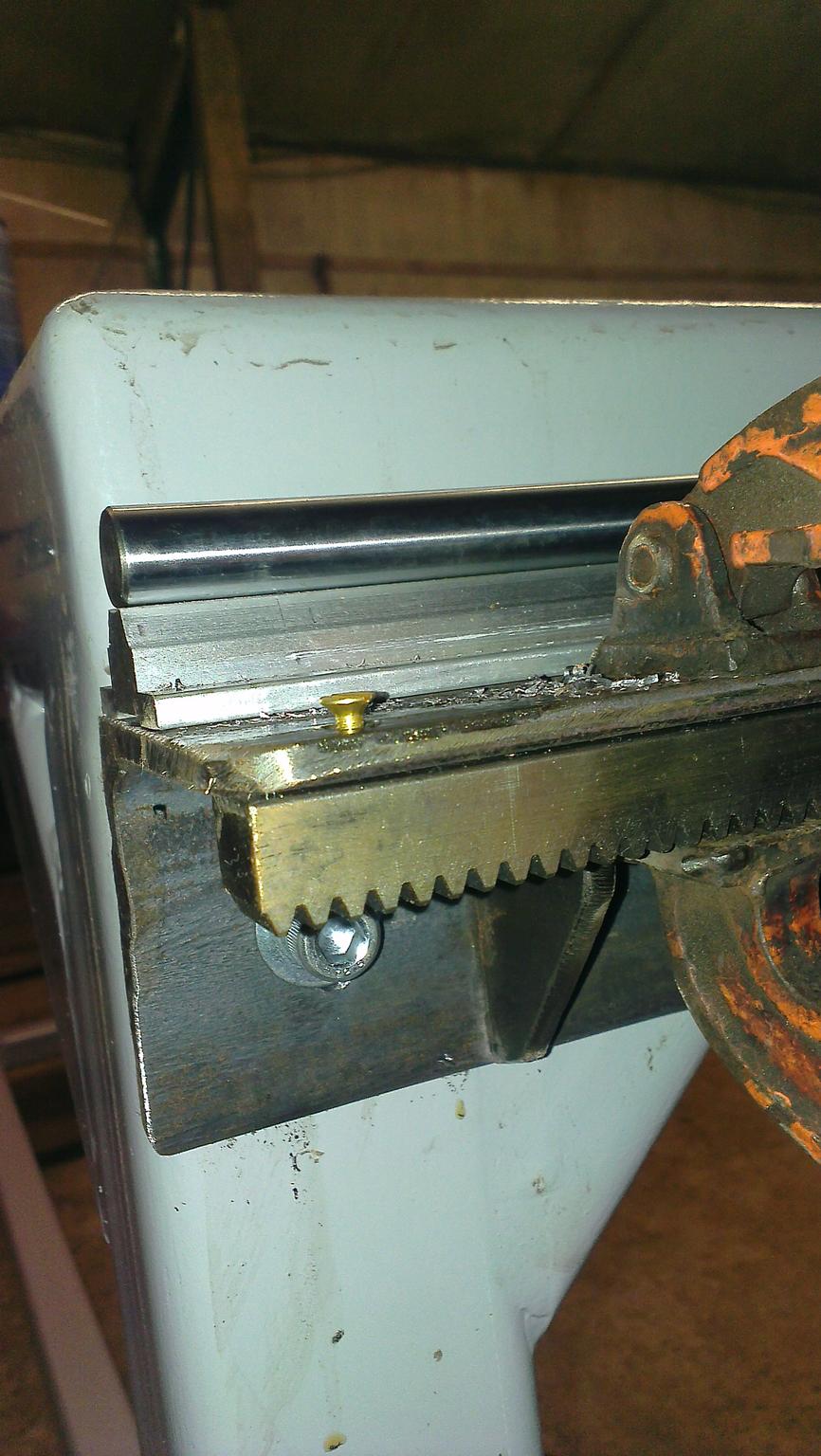 next i needed to drive the y axis so after alot of advice i opted for rack and pinion,it came in 2m lengths and i needed two 3m pieces... (lee roberts look away for the next few photos :triumphant:)