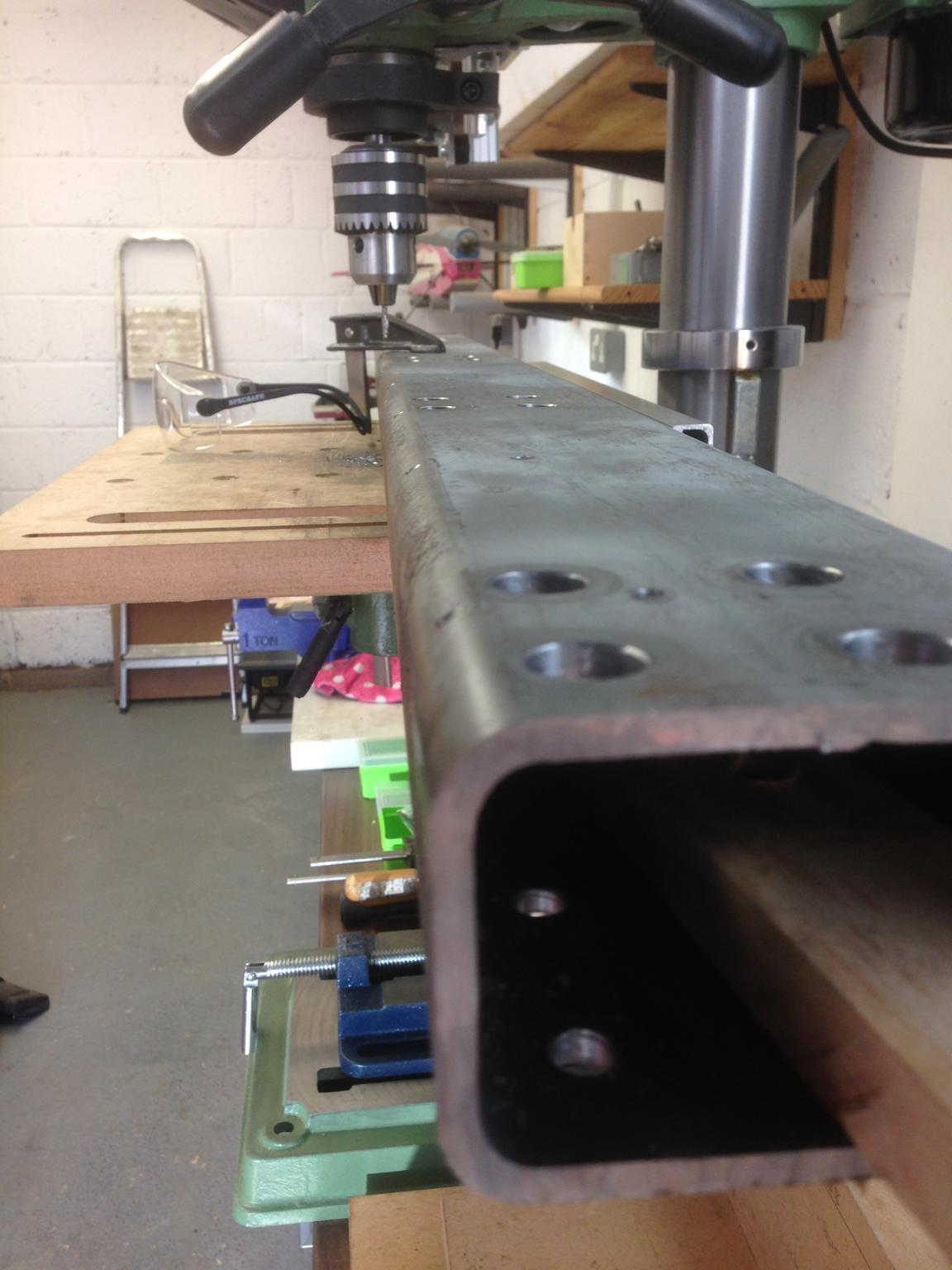 I've just finished drilling and tapping my rail mounting holes in the frame, but this is BEFORE the frame is assembled and the epoxy added.
