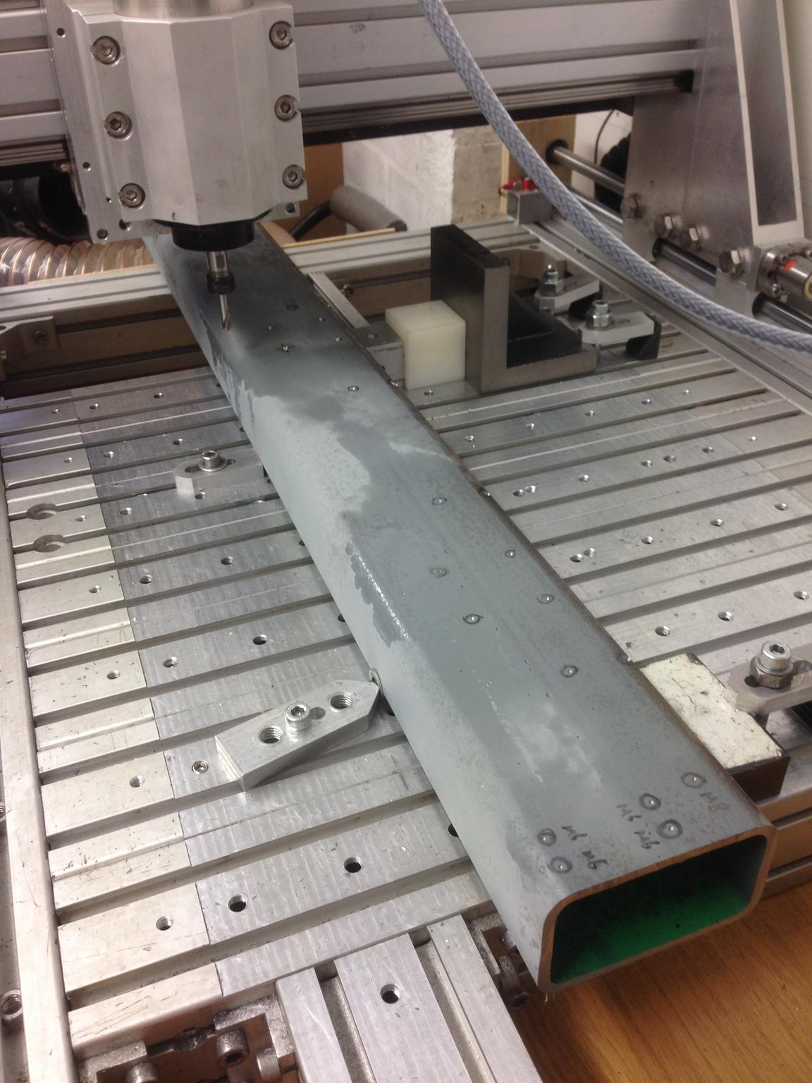 The epoxy will not stick to them and the threads will be clear. I can then lay the rails down and bolt them in place. This method means you can drill the frame on a normal pillar drill.