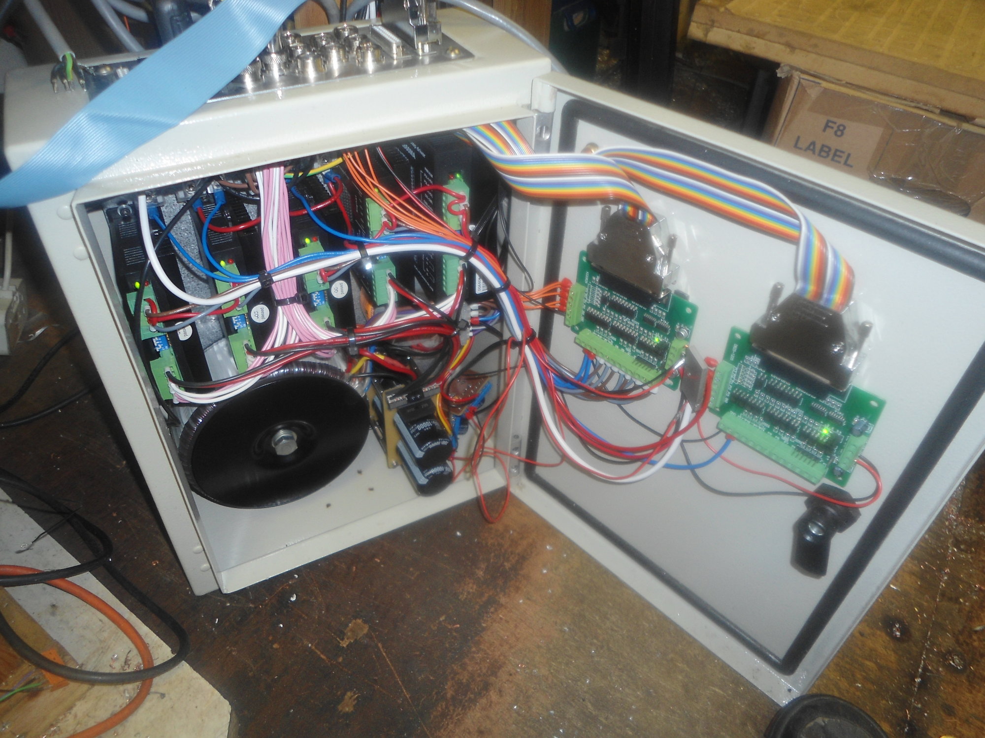 They have two 10,000uF 100V capacitors in parallel to give 20mF total. This is good for a machine with three of the common 3Nm stepper motors from a 50VAC toroidal transformer and OK for four 3Nm motors, though in this case I like to use two and put one on each winding.