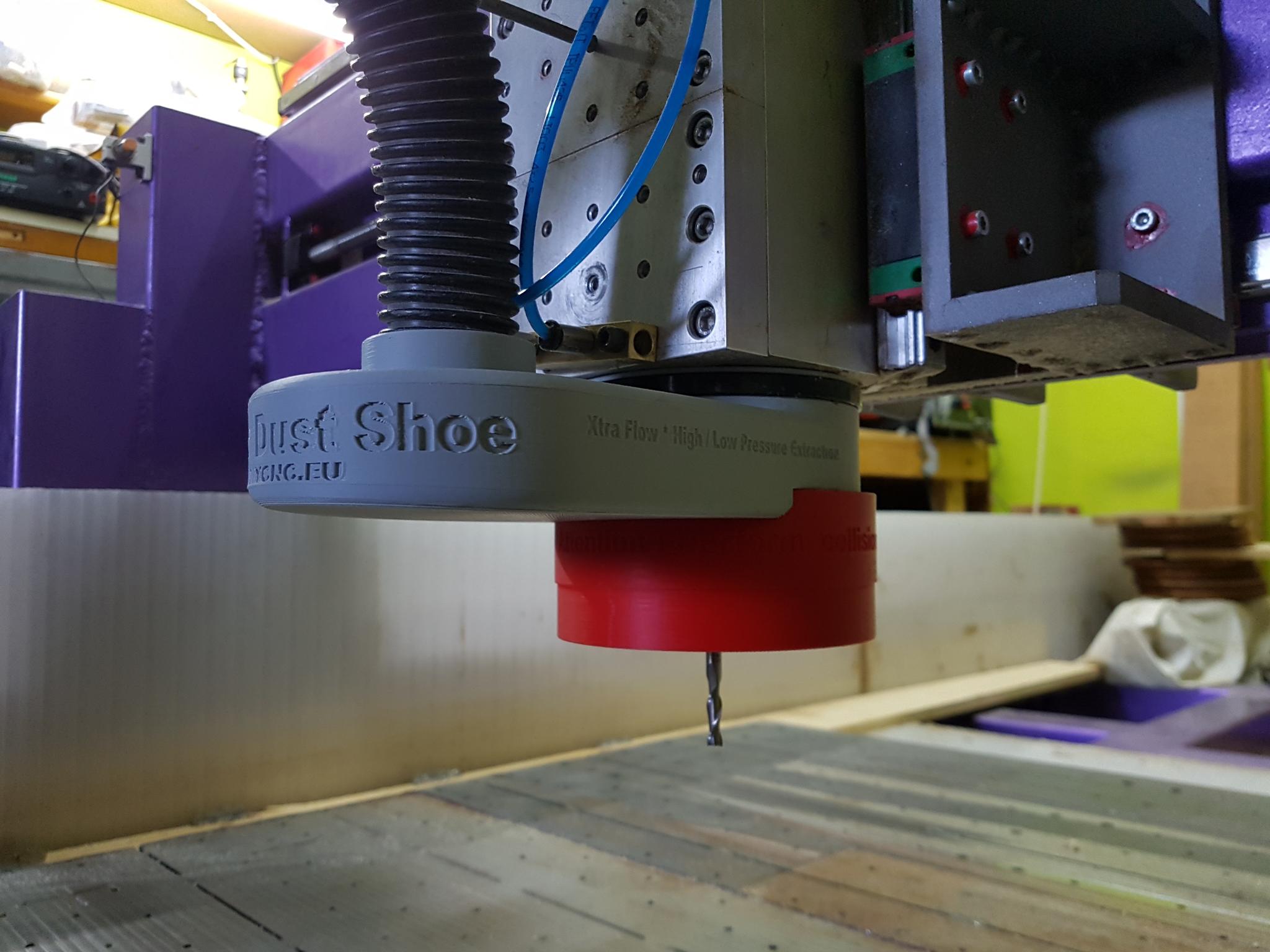 I have used various commercial and DIY solutions for Dust Shoe / Boot/ the last years. Unfortunately most of them had some minor or bigger flaws, which made them unusable with the time. So i decided to develop some simple and working dust shoe for my machine, that will cover the typical scenario.