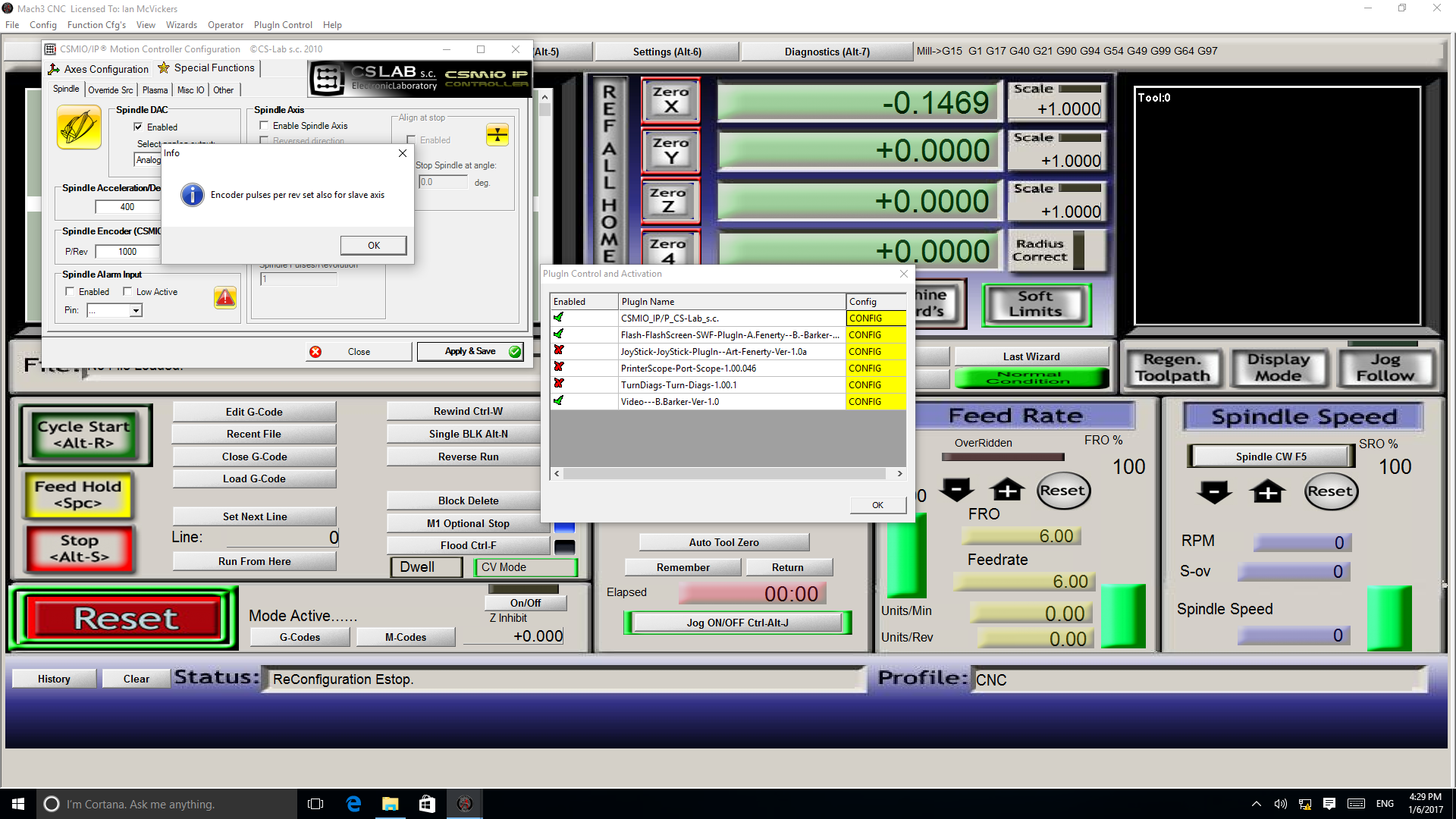 I have uninstalled and reinstalled mach and the cslabs plugin and let it run the firmware uploader. machine functions seem to be ok so I take it that I did that bit ok. I was a bit worried that I wouldn't get the right xml file for mach.
