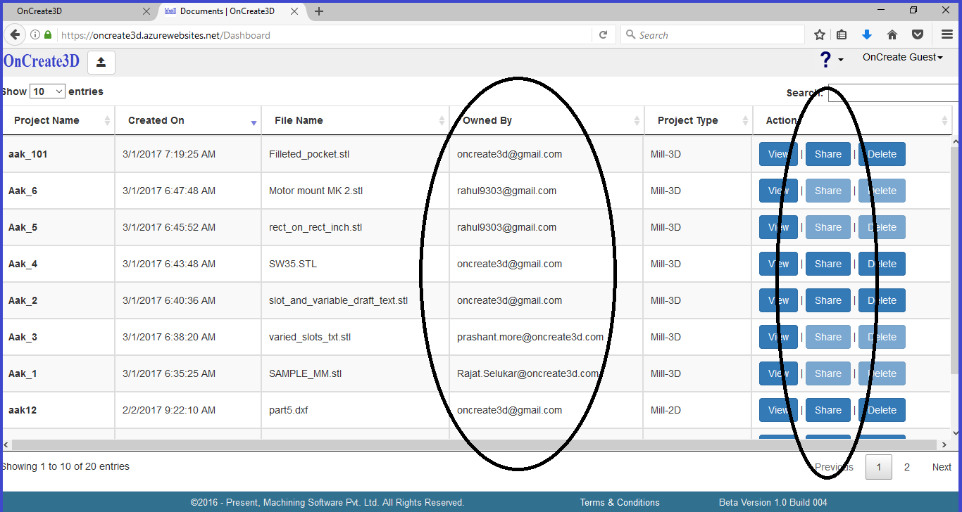OnCreate3D, First Full Cloud CAM app, makes life easy for Design Engineers & Machinists, by allowing to share their project(s) with other users (operators, decision makers etc.) Machinist seating at his remote office can create NC Files for CNC Machines in his production facility. He can simply share his project with operator who can download NC File and run the machine. The machine that Machinist programmed for is busy? No problem, operator can configure POST to output new NC File for different CNC Machine. Create toolpath operations only once and use it for different locations, different machines multiple times. Machinist doesn't want operator to change his toolpath operations? Simply give READ permission. Machinist wants to allow operator to edit toolpath parameters to suit machining conditions? Give him WRITE permission.