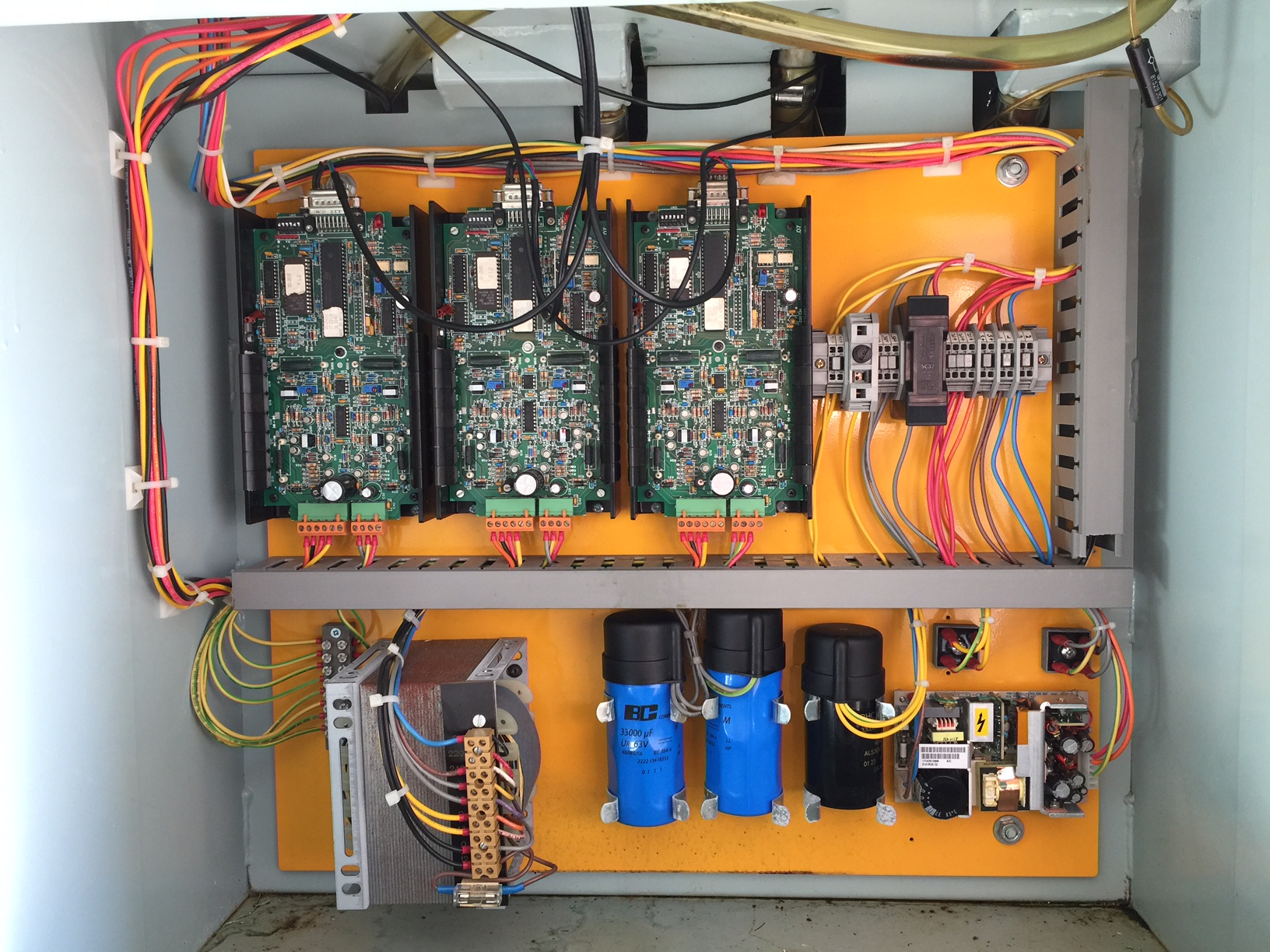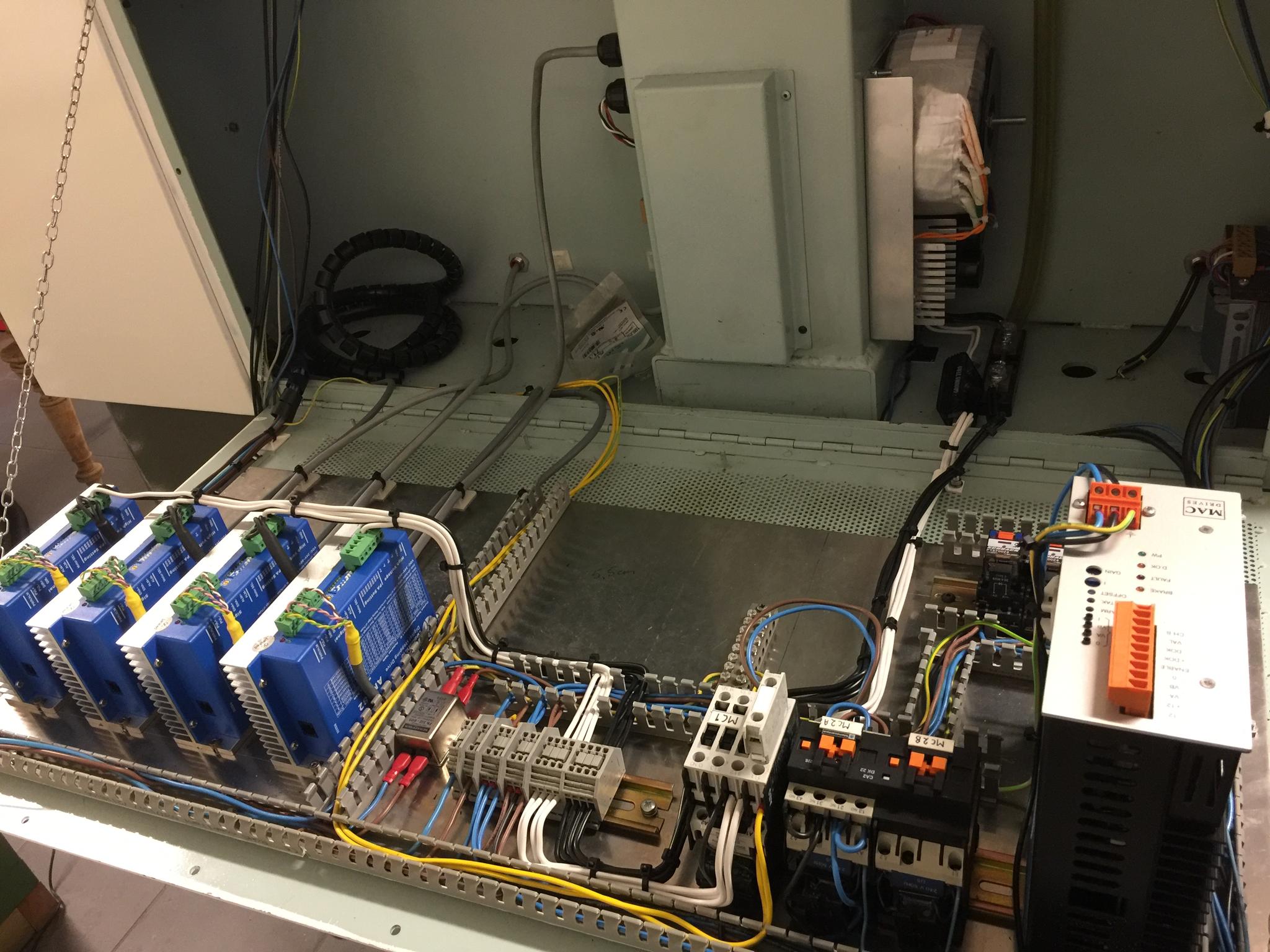 Trew the old wires and installed new shielded wires capable of higher currents except for the power cables from PSU to the drivers where i used standard 2,5mm2 PN cables.
