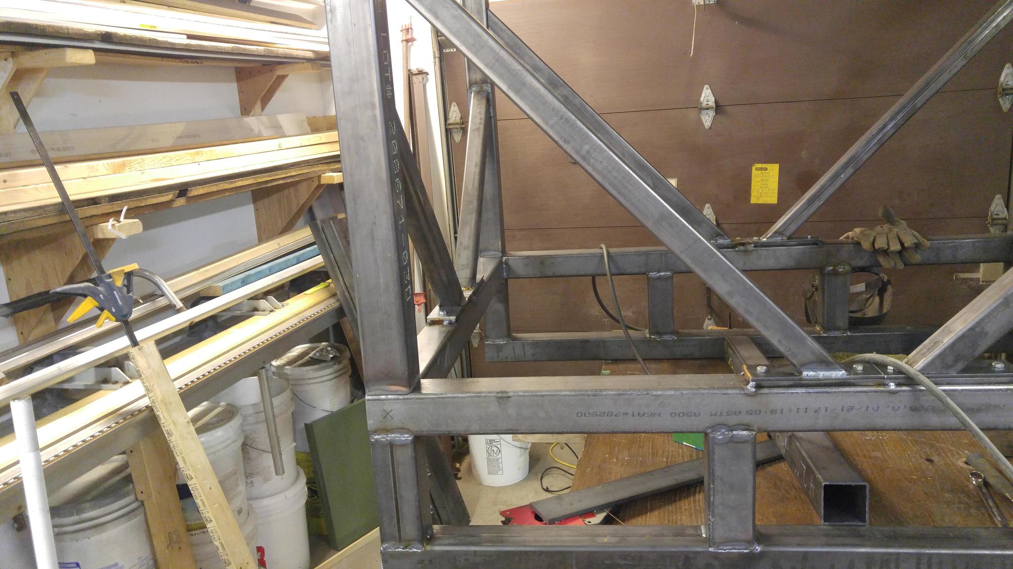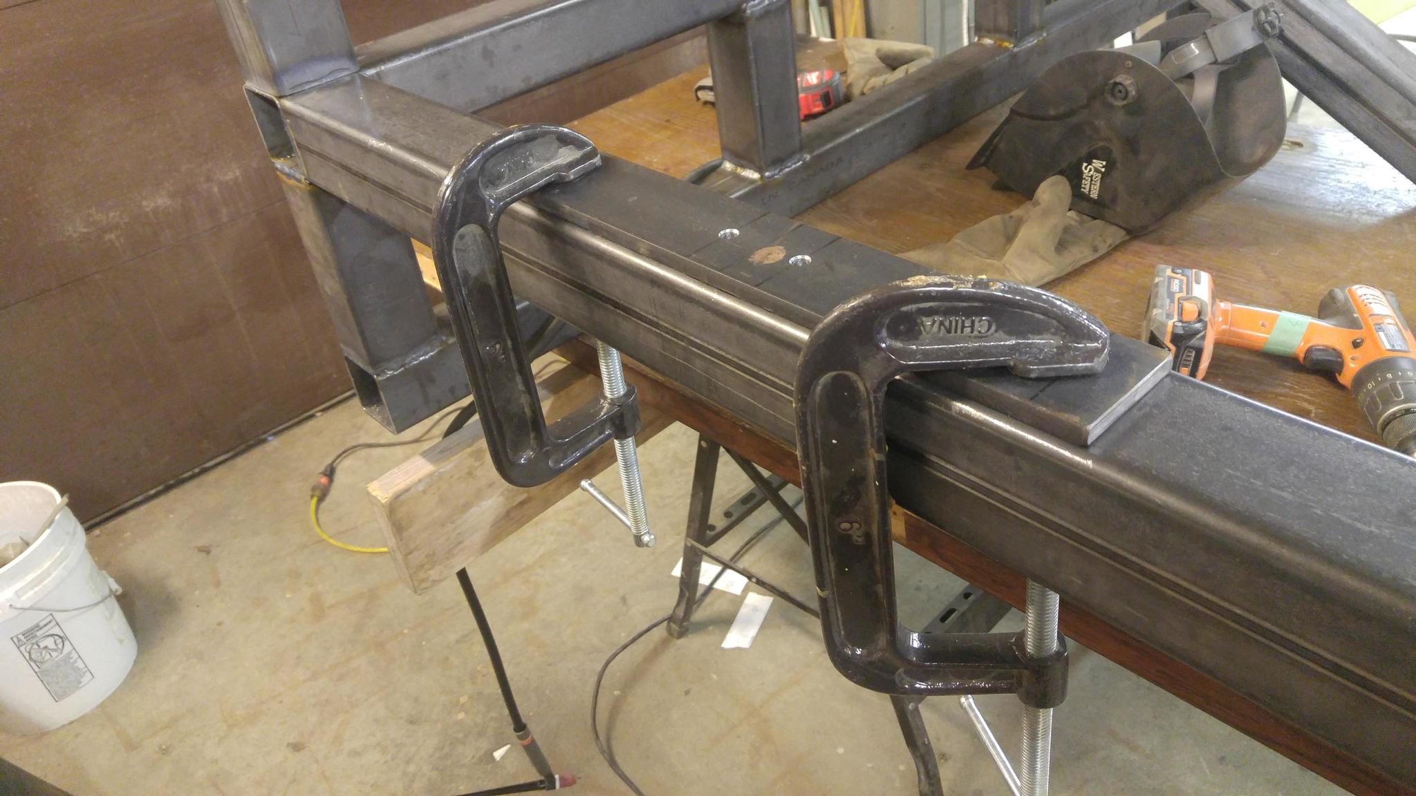 I have made a bit more progress. The machine is now on its feet and the work on the gantry has started. The gantry is made from 2 pieces of 2" x 6" x 3/16 steel welded in an l shape.