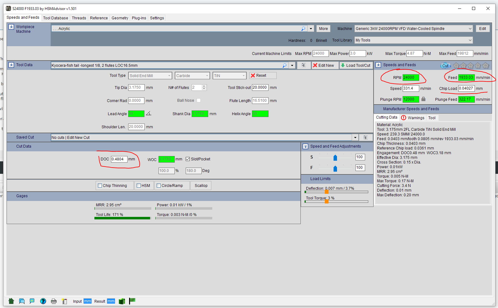 I know for the different materials you need to cut at different RPM's and different feed rates.