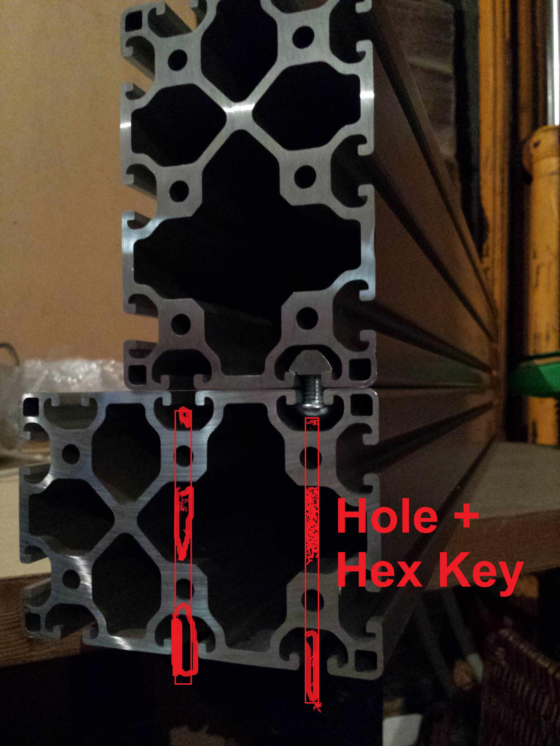 I'm starting the gantry build, i assume the 2 beams must be bolted one with the other, and i ve think that could be done with a t nut and a (minimum diameter) hole for the hex key, screws will be M8 Din 7380. The gantry is about 1m, 1 tnut every 10cm x 2 rows. the 2 beams could be positionned differently...