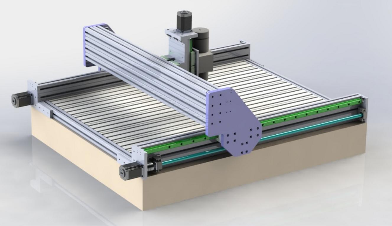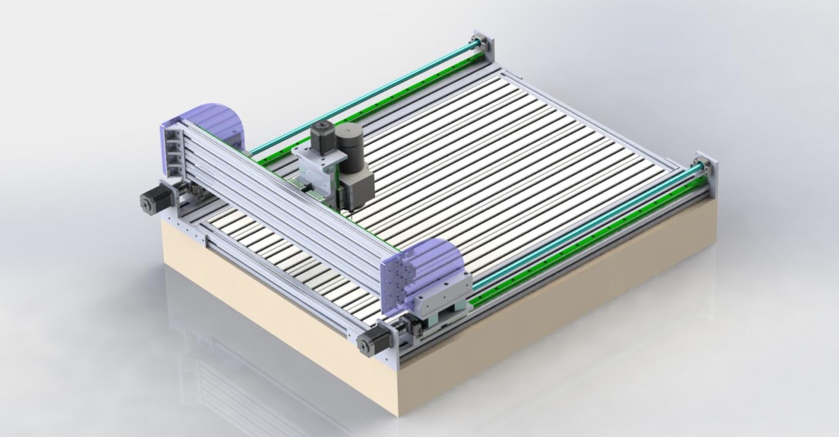 So, I squeezed in a few hours every night for the last 5-6 days to design this one, using experience from my tiny first machine (moving-bed style for wood) and exploring other people's builds online.