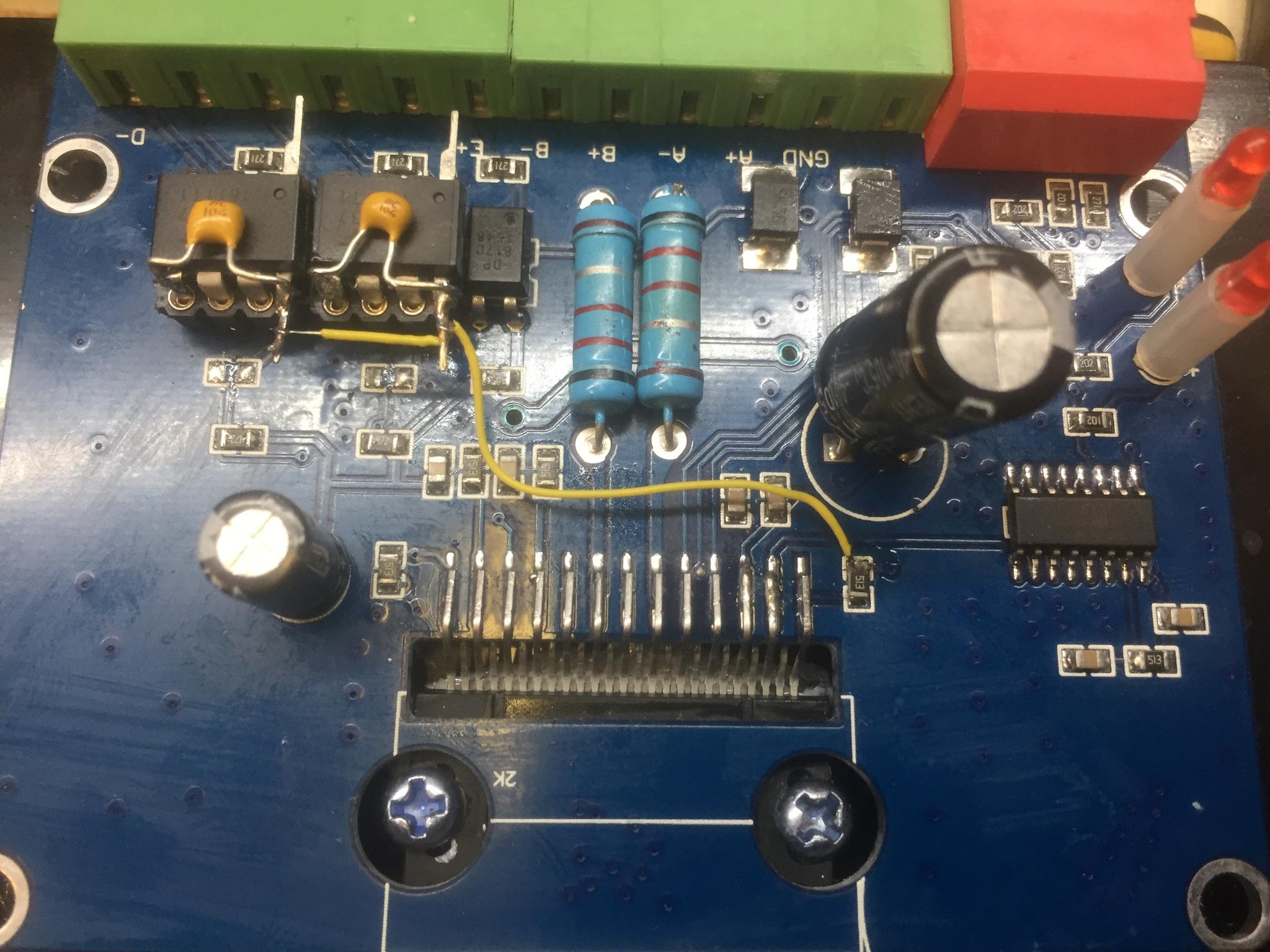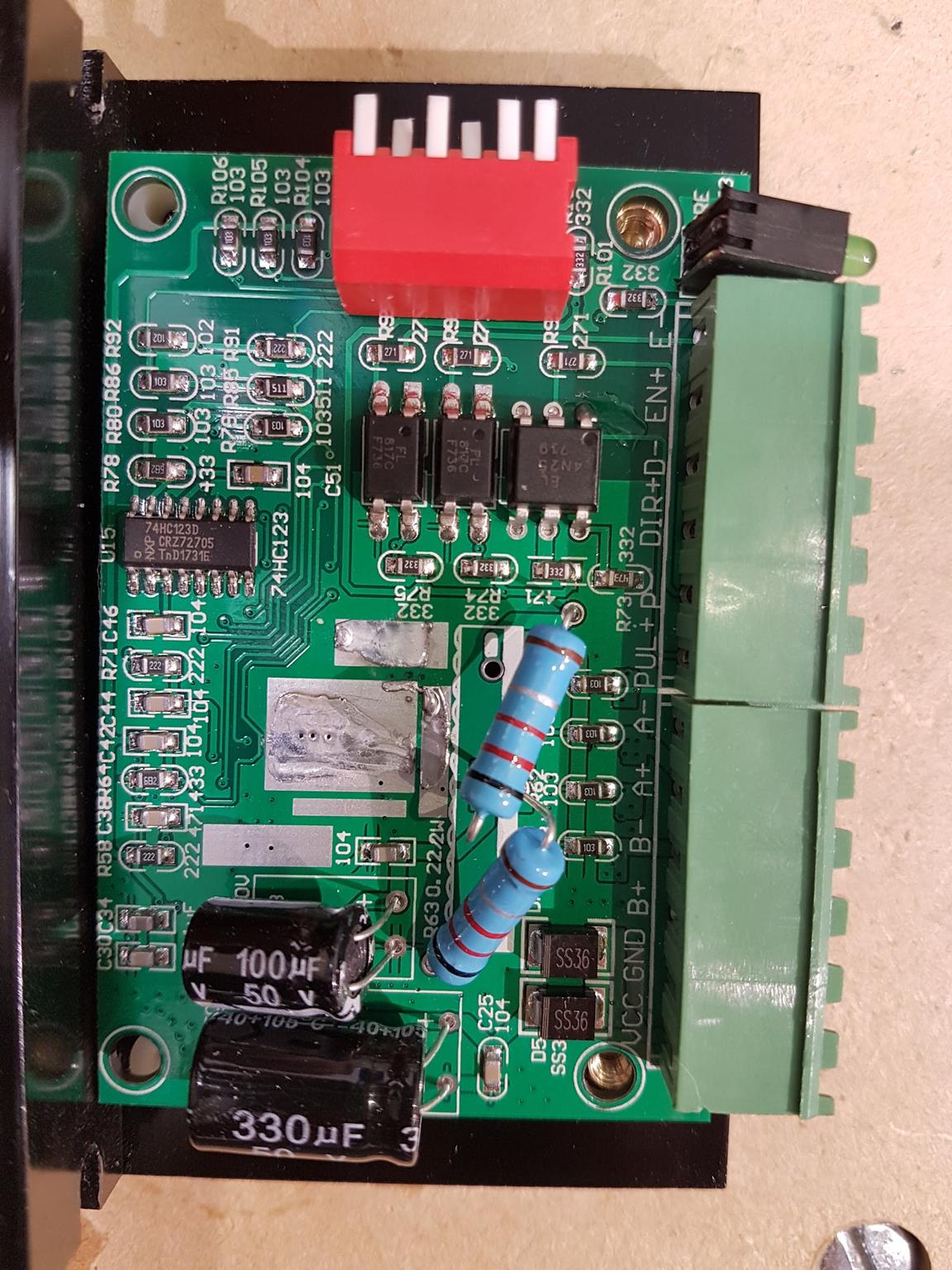 I've strapped capacitors across the supply to the 6N137 and sourced a +5V supply from the SMD resistor near the TB6600.