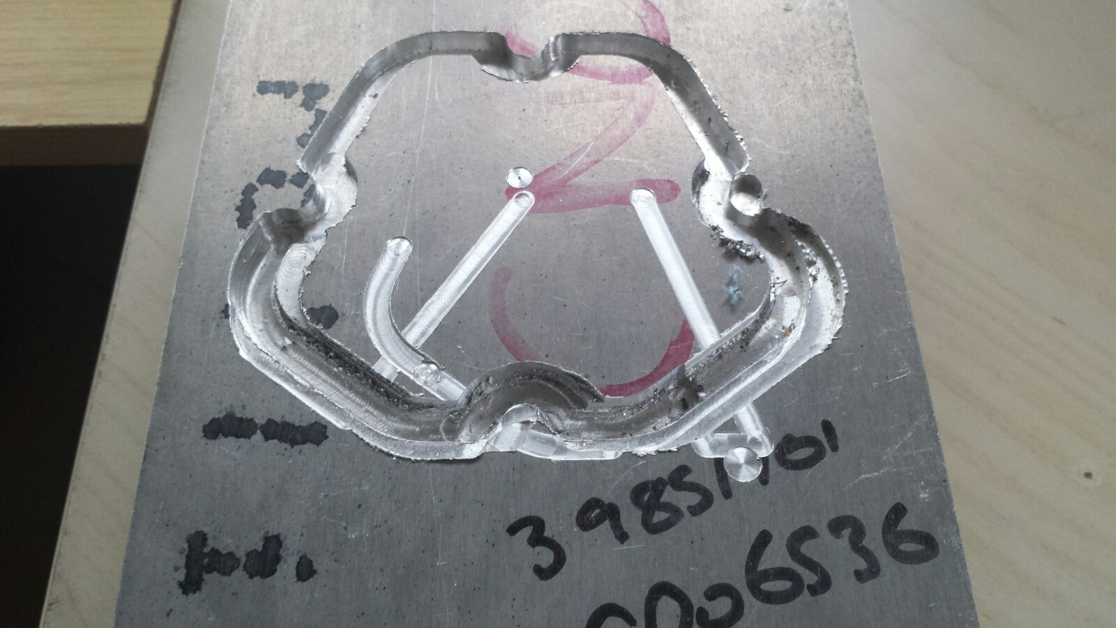 Thanks for the quick reply. The grade of aluminium is 6002. I'll hunt through my notes for the speeds/feeds settings. I recognise the results of slot milling you describe above. I have small chippings stuck to one side of the slot and did chip one on my endmills. So instead of slot milling to save the lump of aluminium in the centre, I should just mill out the whole of the centre piece, then mill out the surplus aluminium around the outside to create the 5mm wall. What I am trying to create is a larger volume/taller rocker cover for my sons' Honda kart engine.