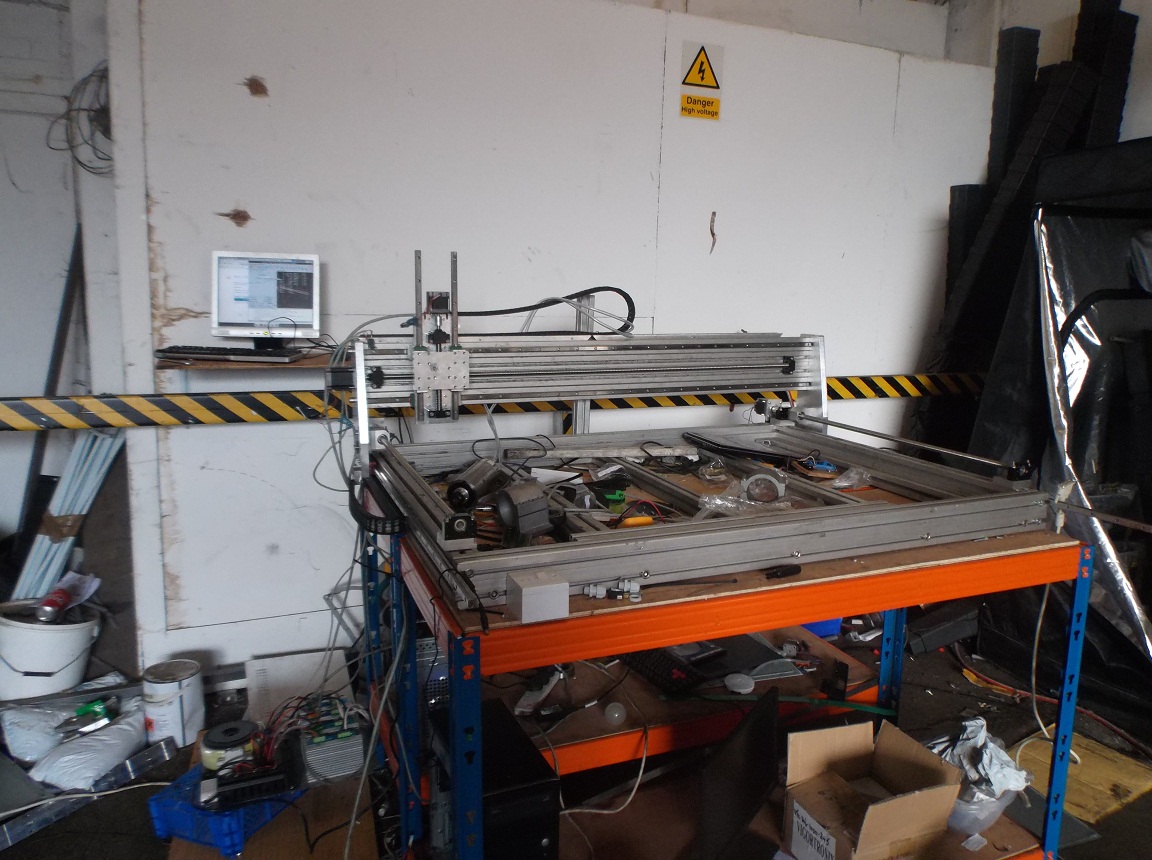 I have 1.3m of travel * 80cm of travel in a footprint of 1.6m*1.1m plus the bit my nema 23's stick out but they could be belt driven and slung under the body to save space.
