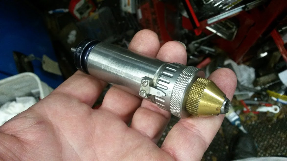 The engraving spindle has an adjustable "nose" which is micrometer adjustable to allow a precise amount of the cutter to protrude, by applying spring pressure on the slide the engraving spindle nose will follow uneven and curved work surfaces maintaining a fixed depth of cut, the nose fitted incorporates a spherical follower which is very good for maintaining depth of cut over significant changes of surface angle, up to around 30 degrees -