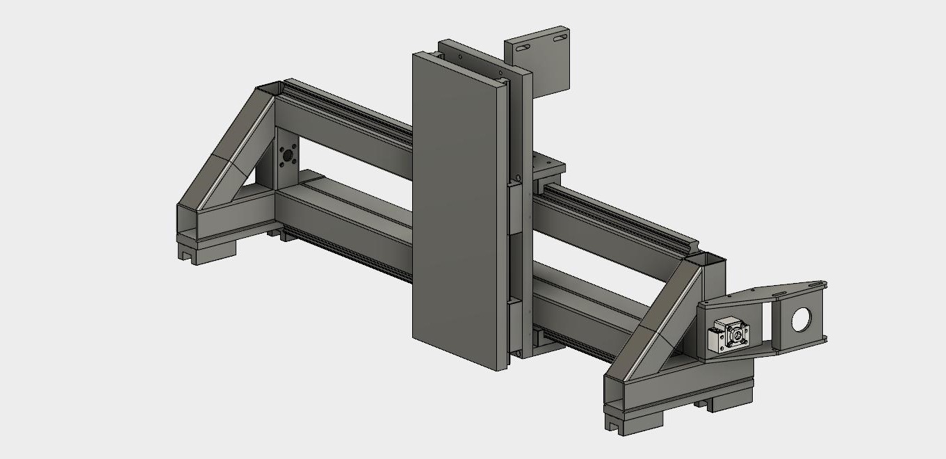 A partial view of the gantry but it shows all the important bits. There are also a couple of short upright sections of 50x50 bracing top rail to lower rails not shown on the picture.
