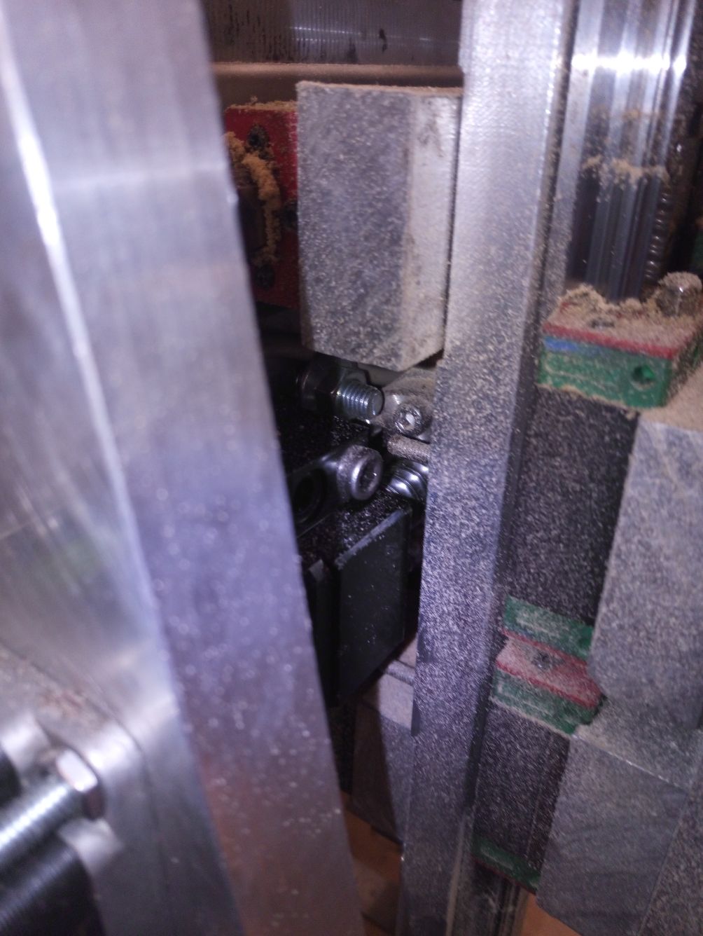 The top block is loose in photo traced to one bolt was 1mm too long (I had to cut some down and missed one) I've fixed it and now everything is tight and rock solid.