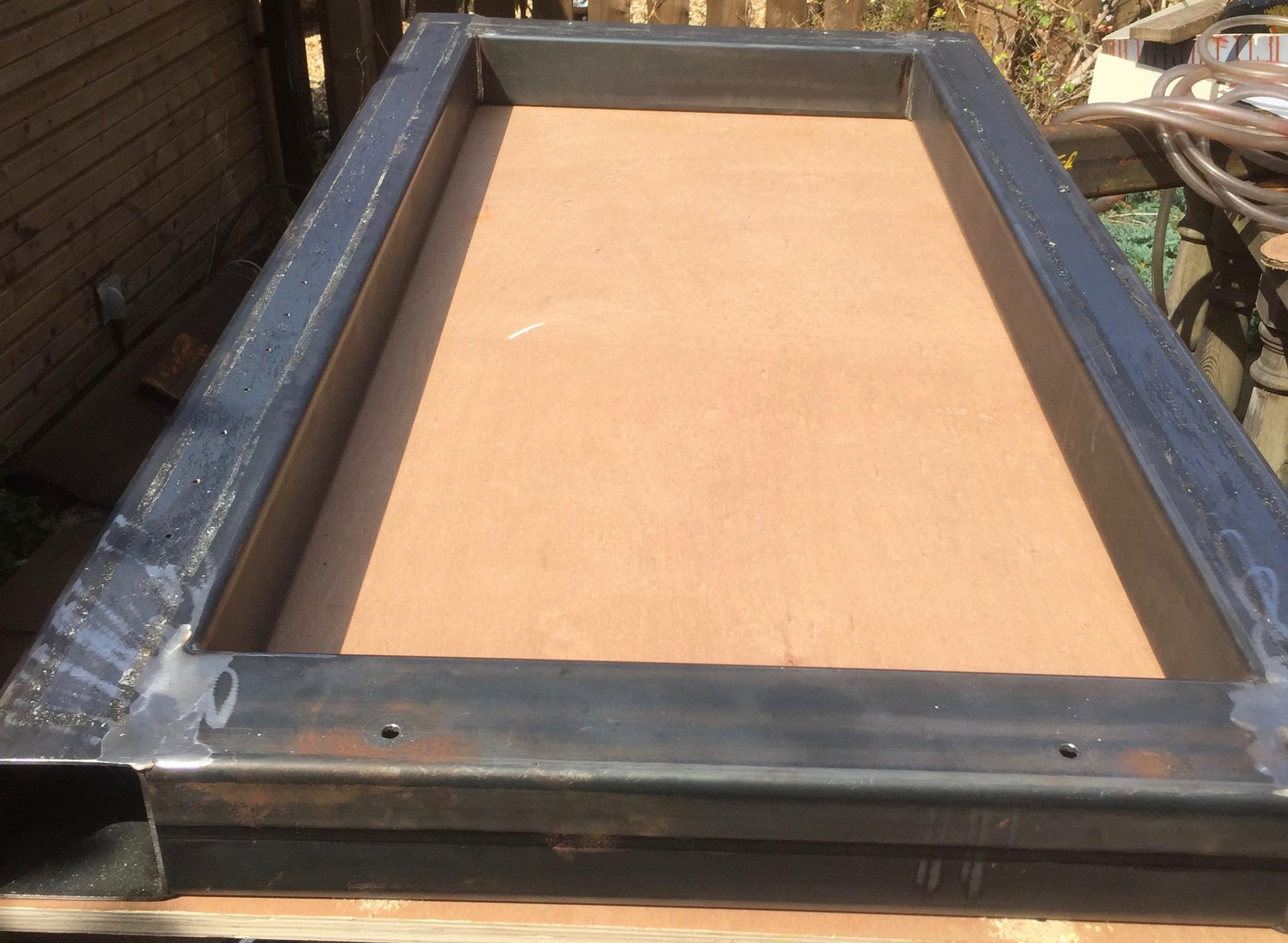 As a result, I have the steel frame that I was going to use for the rails - welded construction from 90x90x3 steel, fairly square and flat (flat enough for an epoxy bed for the rails). Size is 1400mm x 730mm (external), there're 4 9mm holes drilled - two either end along the short sections.