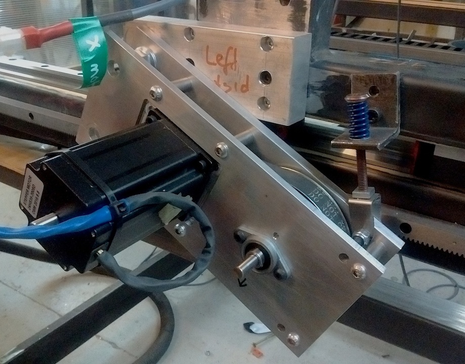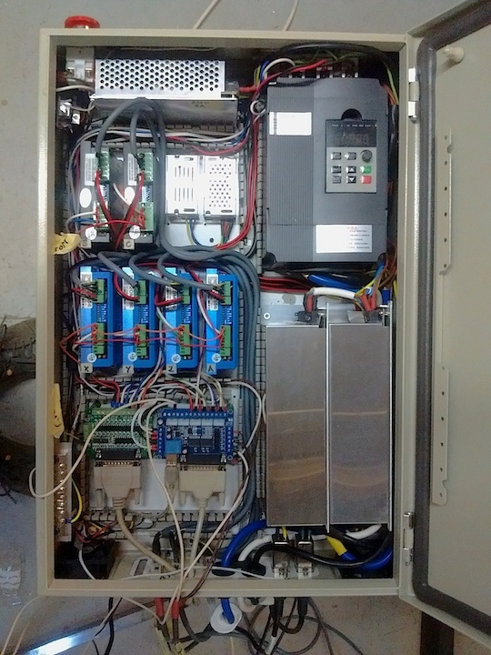 4 x 2DM556, 2x M542, 4 x 566oz in 4nm steppers, 48v PSU, 2 x 5 axis breakout boards. HTD 4:1 gearing on the motors, Rack and pinion drive, HG20 rail and blocks. Mach3 etc
