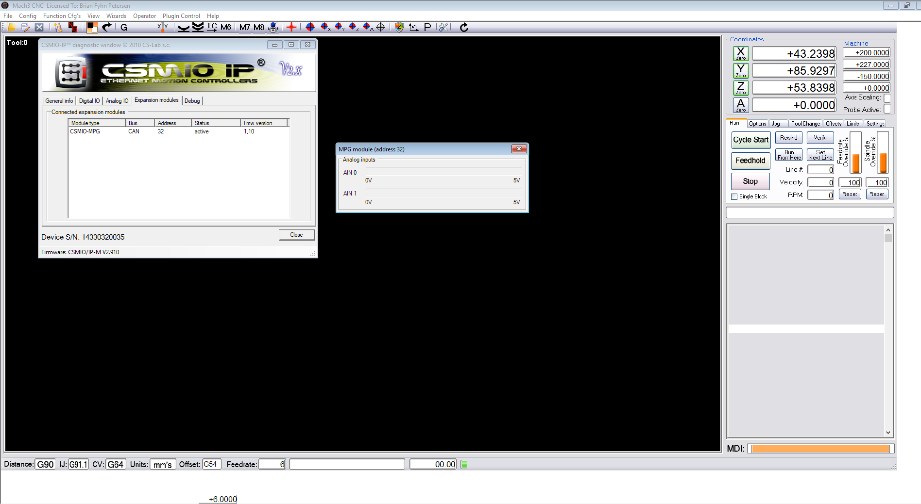 I had once a problem, most probably related to the CSMIO IP-M controller plugin. Without doing anything wrong, one day just stopped communicating properly some inputs. I have tried a lot of things but only reinstalling Mach3 solved the problem. If you reinstall, make sure to copy your xml profile file, macros, plugins and controller settings.