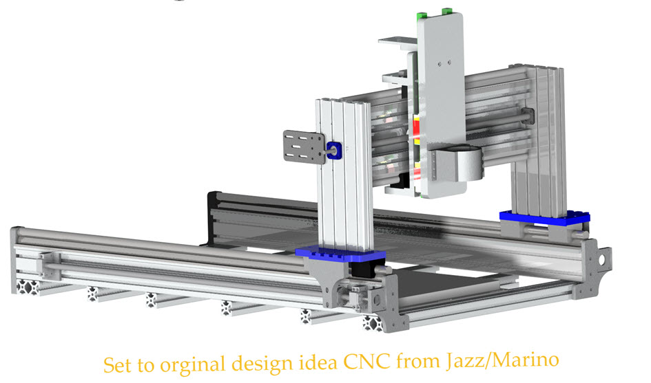 As that is a rendering of the original design that Jaz and I discussed before he built a sightly smaller version for my workshop. The are all extrusion or Aluminum plate and be changed out for either steel box section or linear rails rather easily in the design set up. I have been dealing with life, health, and business. Not a simple design and I stil need to finish a few of the adjustment points but a rather sound design that I have cut aluminum on when it was set up for a 1.5kw spindle (strongly suggest 2.2kw minimum. any how hope it helps.