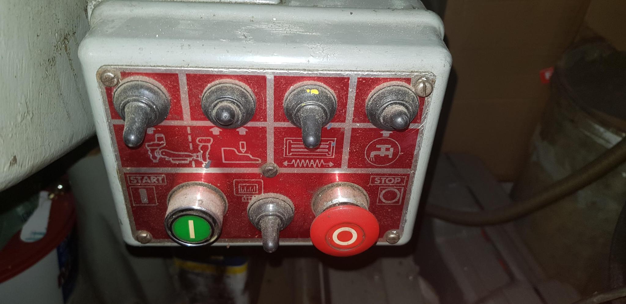 I've also got this switch panel which I can't seem to find out what the switches are for, some help would be appreciated! I guessed that the one with a table like icon on the top row (3rd from left) might be the power feed on/off, but it didn't seem to matter which position that switch was in.
