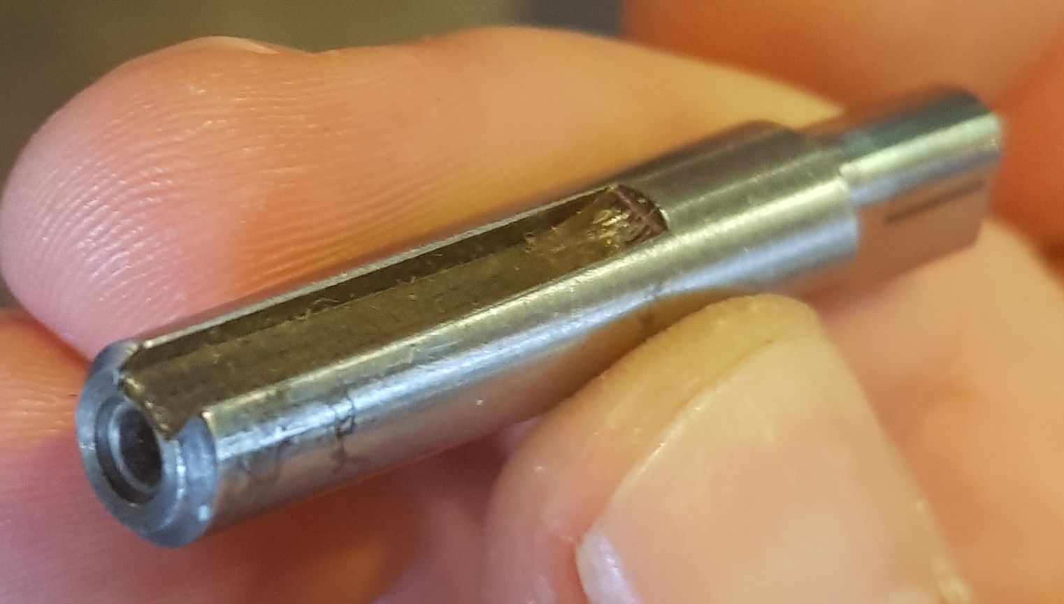 There should be two photo's in this post, one from the front and one from the back of the bit, the only identifier is the mark 2,8 r (I think it's an 'r') and one end is flat bell shaped.