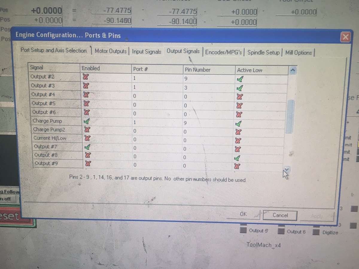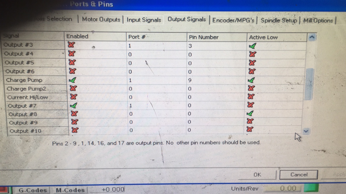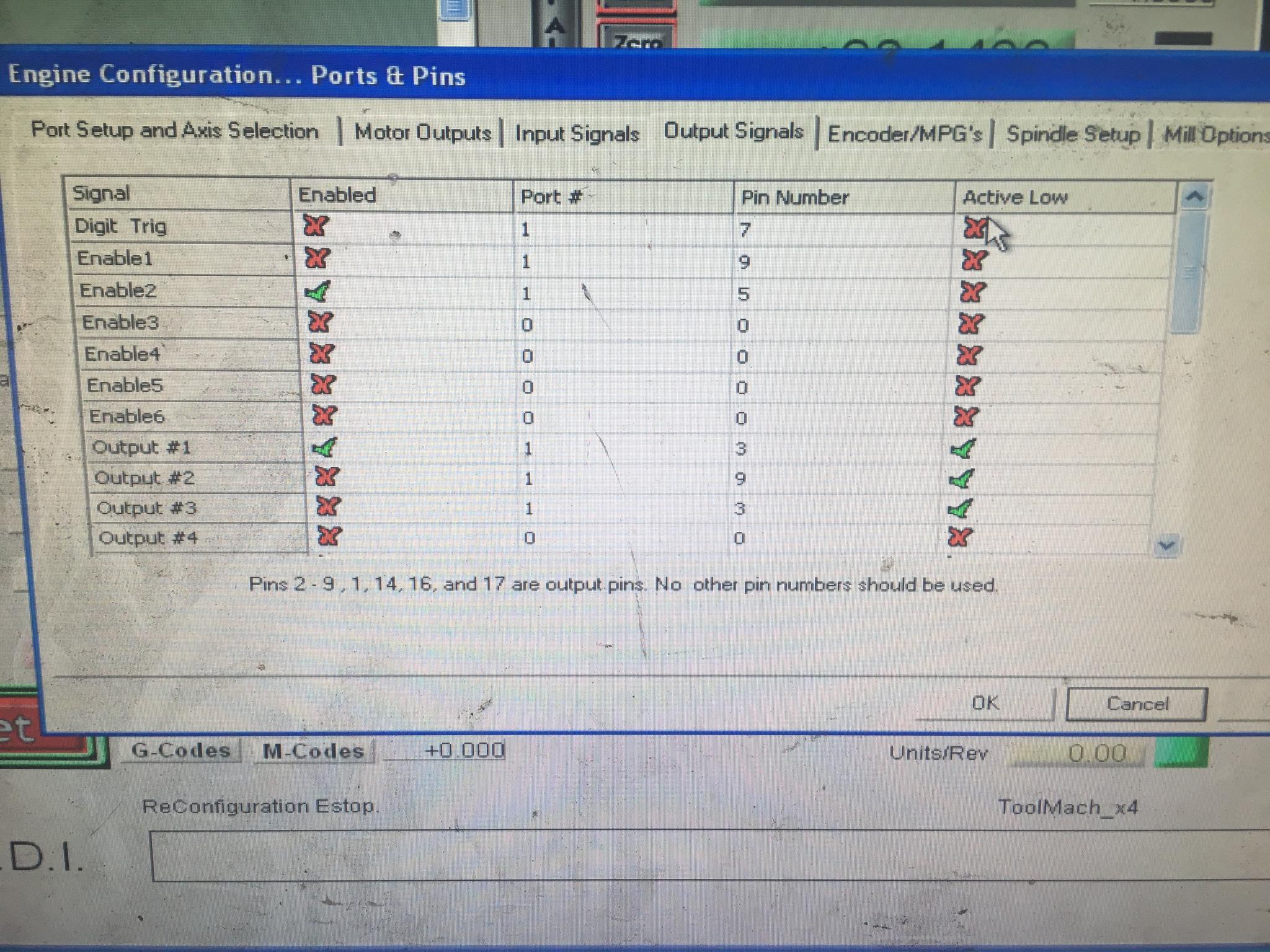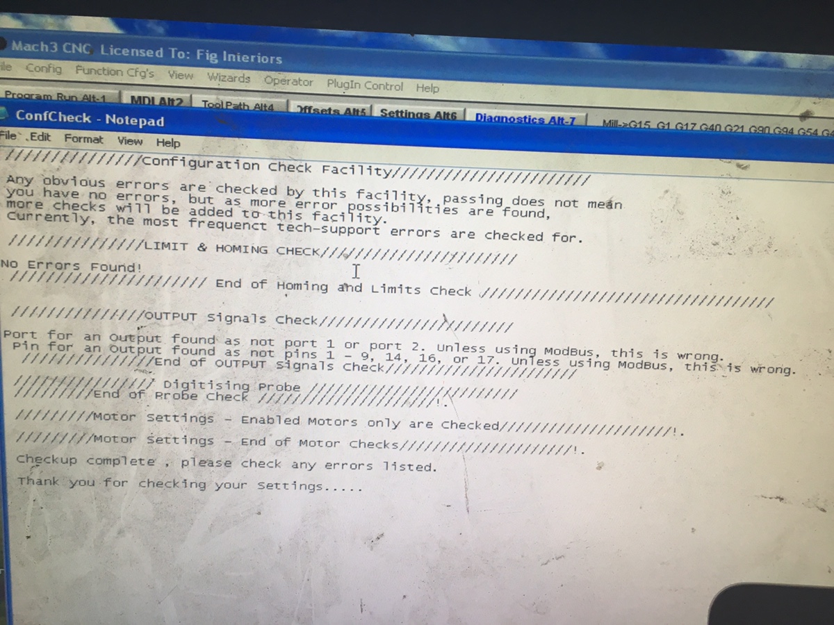 -Just ran the “config check” in Mach3 and seems “output 7” is configured wrong?