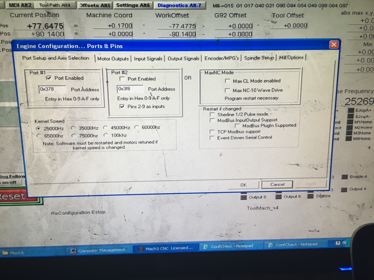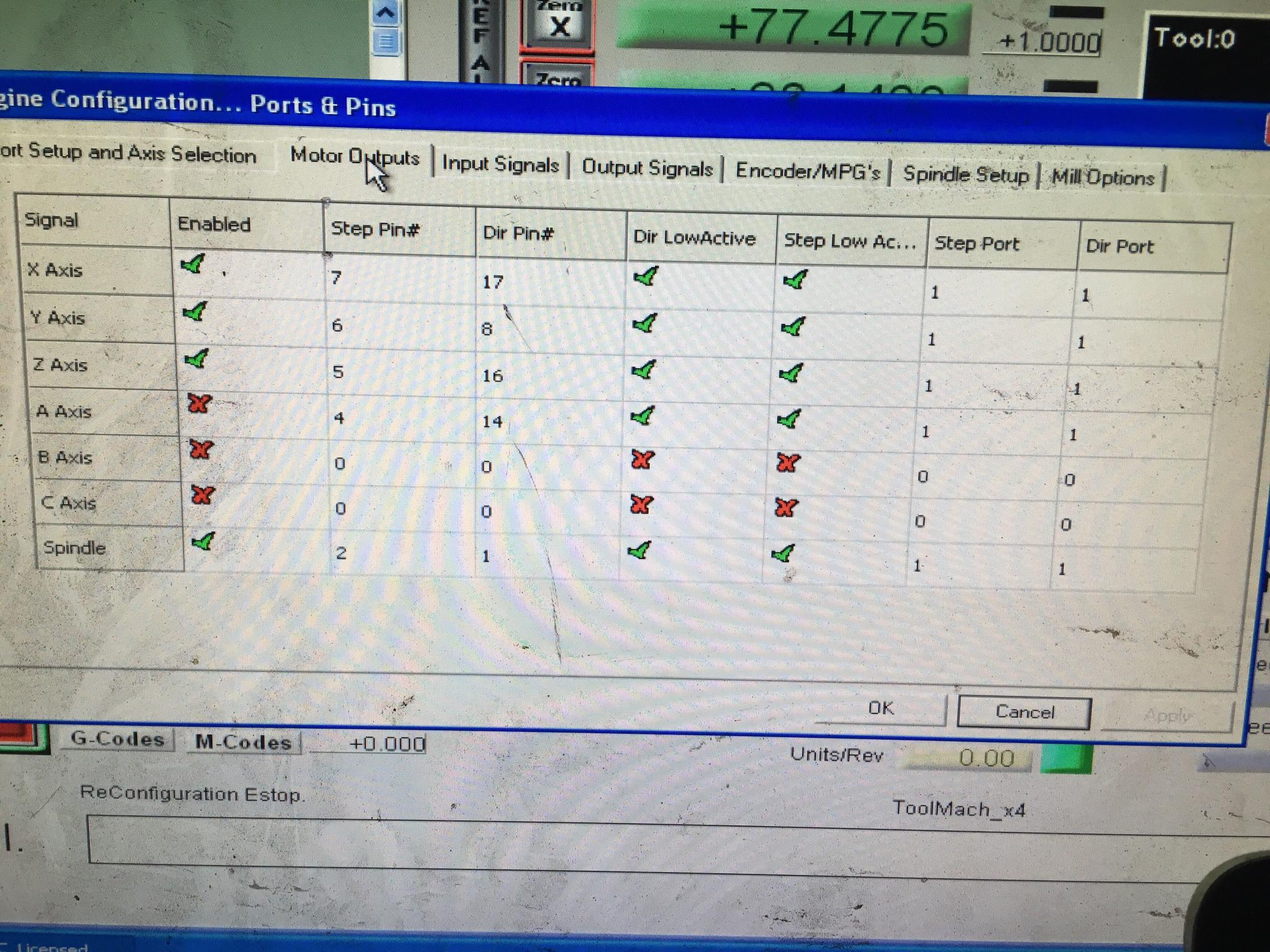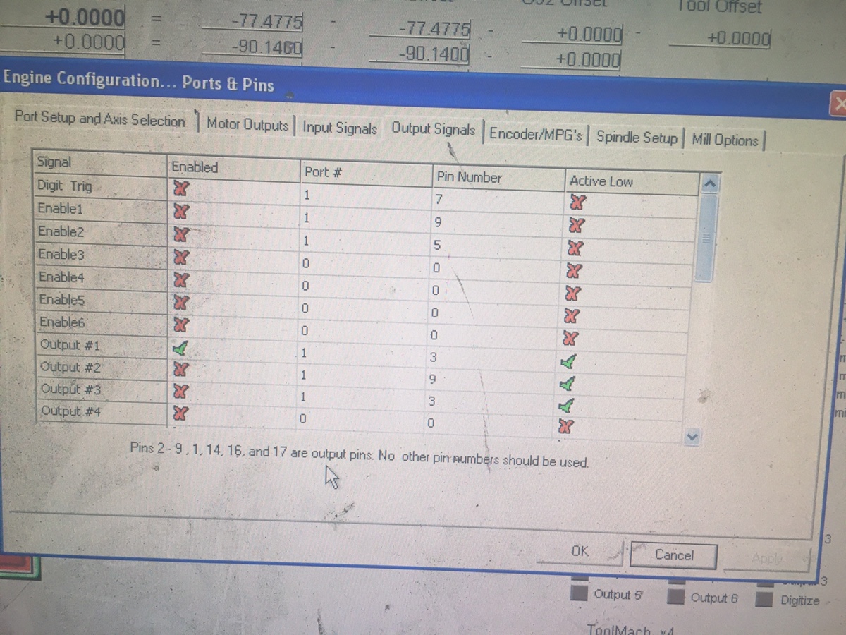 -Just ran the “config check” in Mach3 and seems “output 7” is configured wrong?