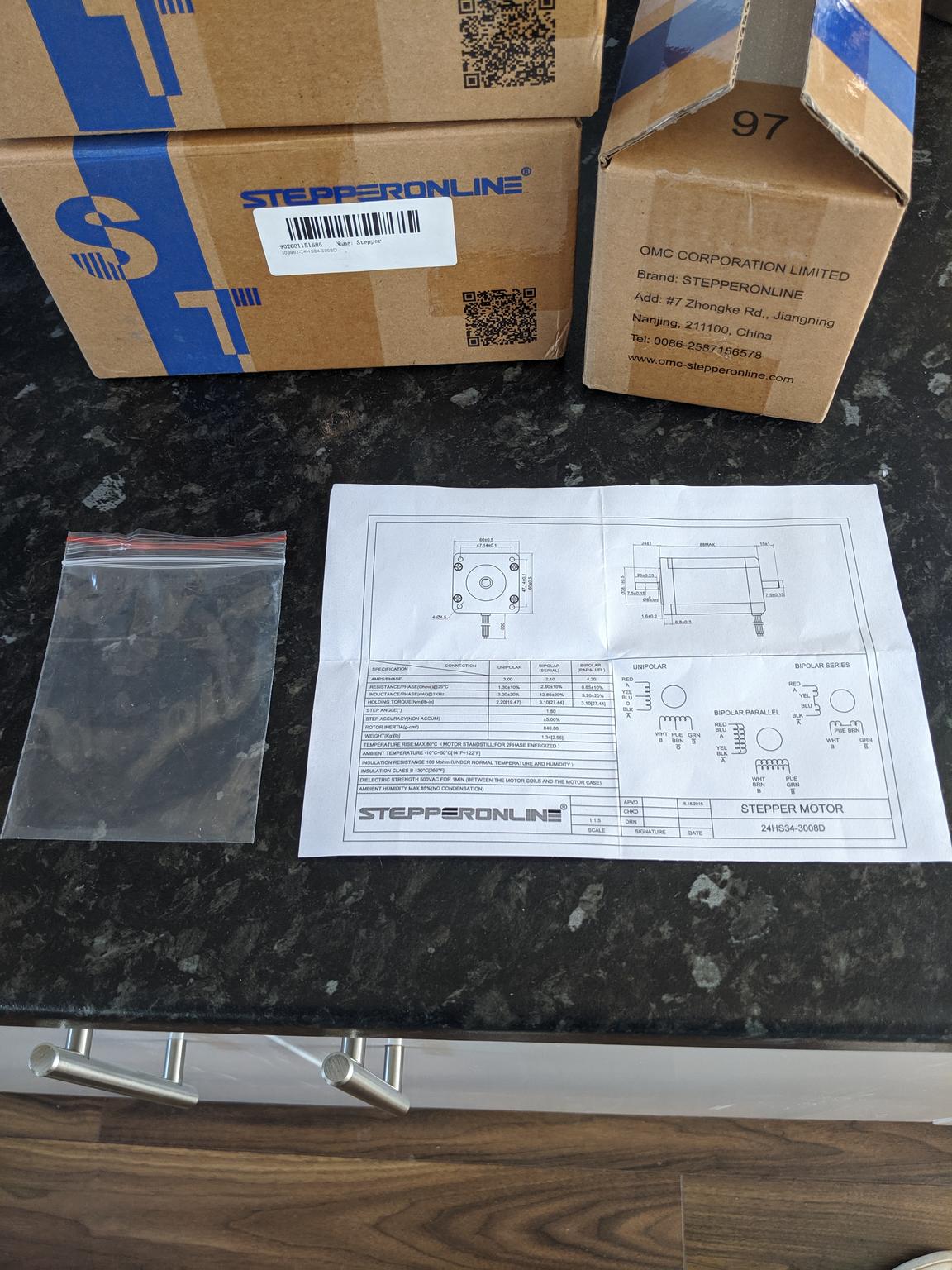 I have also tested their service and ordered a set of their Nema24 3.1Nm stepper motors: Nema 24 CNC Stepper 3.1Nm (24HS34-3008D), they seem to be a very good match spec wise on the 3.1Nm motors we typically use and recommend on the forum.