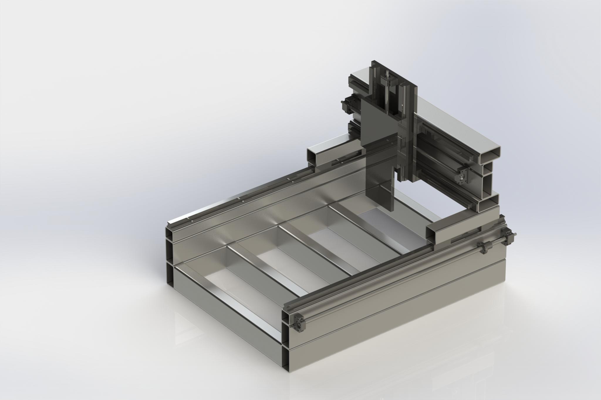 Gantry and base uprights will be filled with epoxy concrete for reinforcement and dampening purposes.
