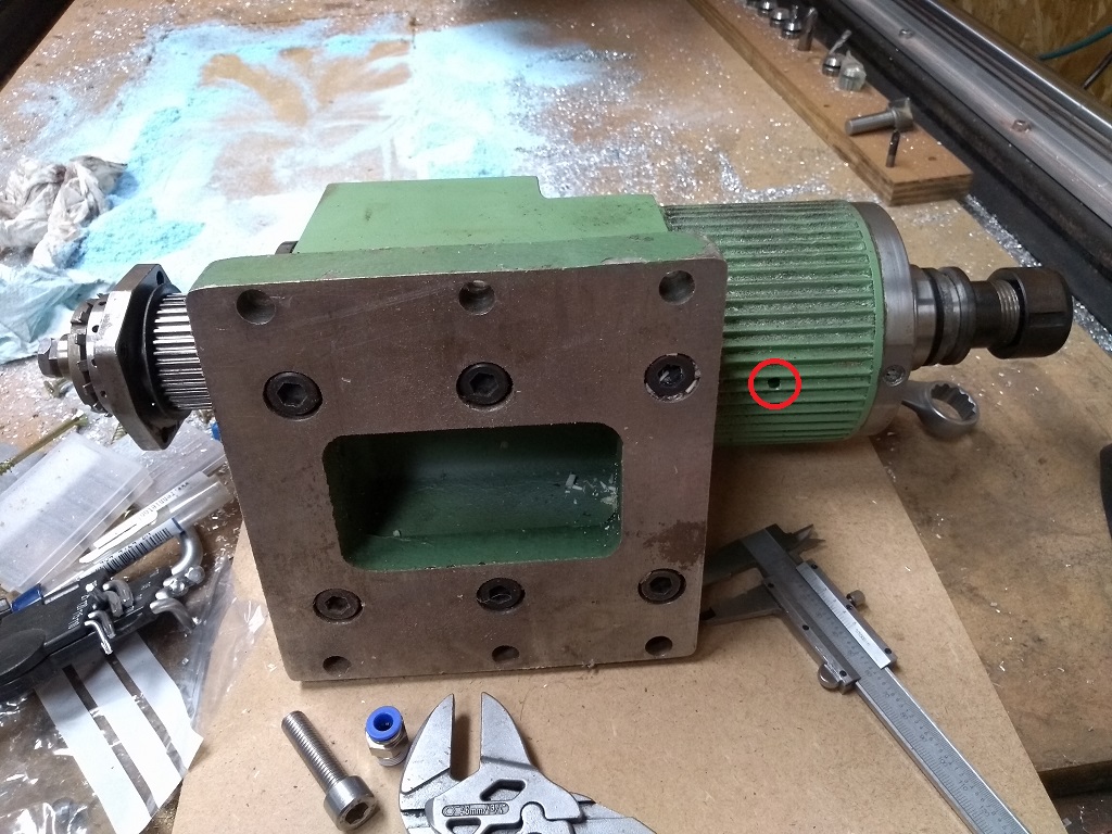 It has a threaded hole in the front that did not have a fitting or bolt in (just taped over) which has me wondering if it's meant to have a continuous lube feed or forced air cooling. This was the standard spindle Wadkin offered at that time and not a fancier higher load/higher precision option. The spindle seems in good condition, so I don't really want to take it apart! Maintenance requirements would be great to know. Any ideas?
