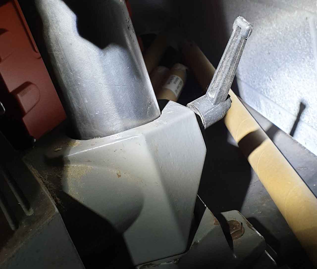 However, somehow, he managed to lose a part in the table that allows the drill table to be clamped to the pillar.