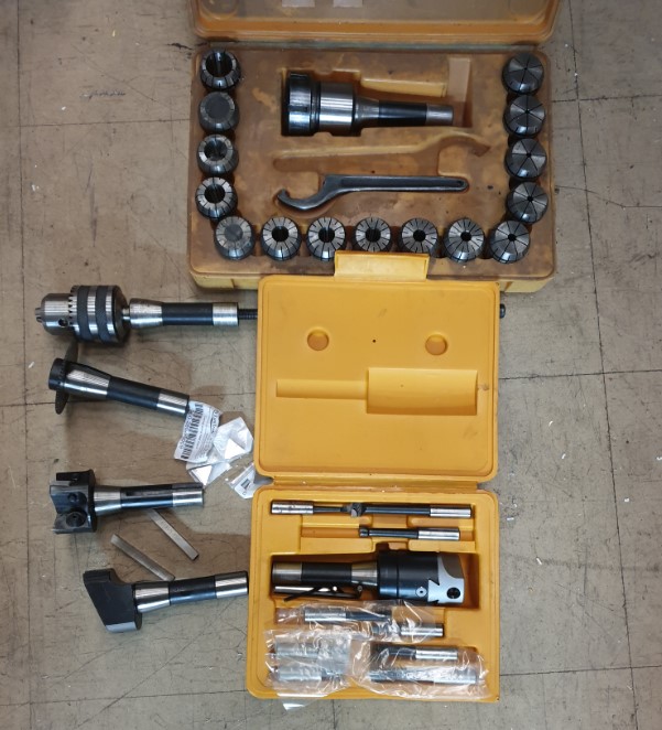 boring attachment, collet set, saw, fly cutter and multi point milling cutter.