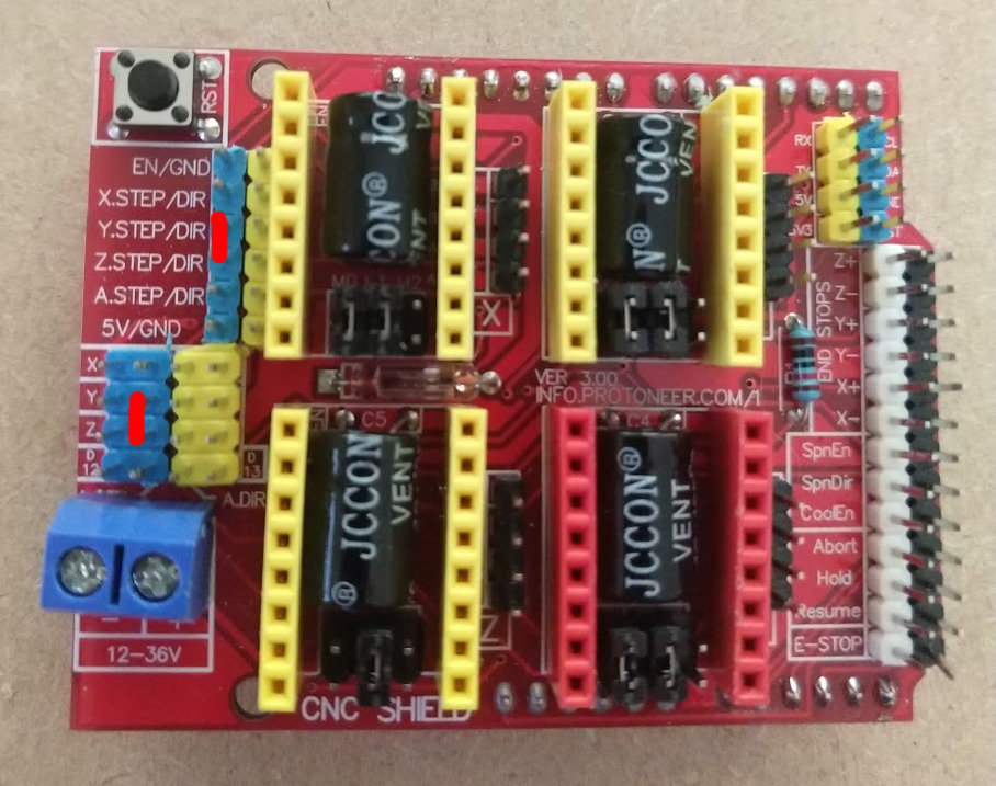 Hi, I’ve just started building my first attempt at a small CNC router based up an Arduino Uno running grbl and fitted with a V3 CNC Shield with four A4988 drivers (Y axis cloned) running NEMA 17 2A steppers. I’m then using UGCS to send the G-Code.