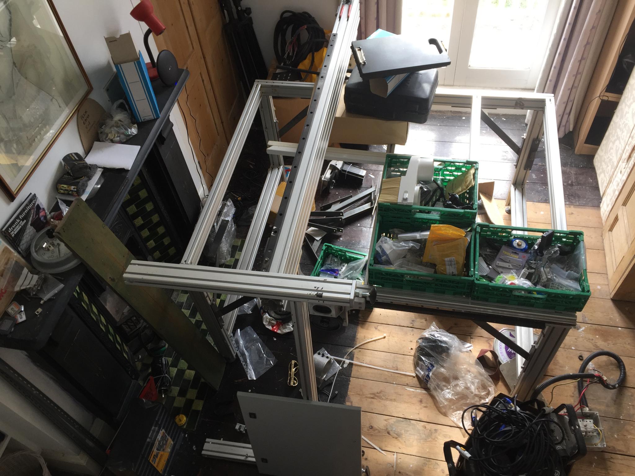 I spent a good deal of time lurking on this forum about three years ago, picking up as much as I could then I made a shopping list and bought a load of stuff ali from Germany and lots from China. The intension was to build something like the CNC routerparts machine because the manual is downloadable and it gave me some sense of direction I set myself up in in the basement of a friends building and started work got as far as putting the table together there and spun up the spindle and a stepper motor at home. I also drew a gantry riser in Fusion and had a couple cut. Then work and life got in the way and I had to move what there was of the machine home. Half of it is now in the spare room which my wife wants back so I need to get on with it. Ive been wiring the controls together over the last few weeks and have been enjoying it.