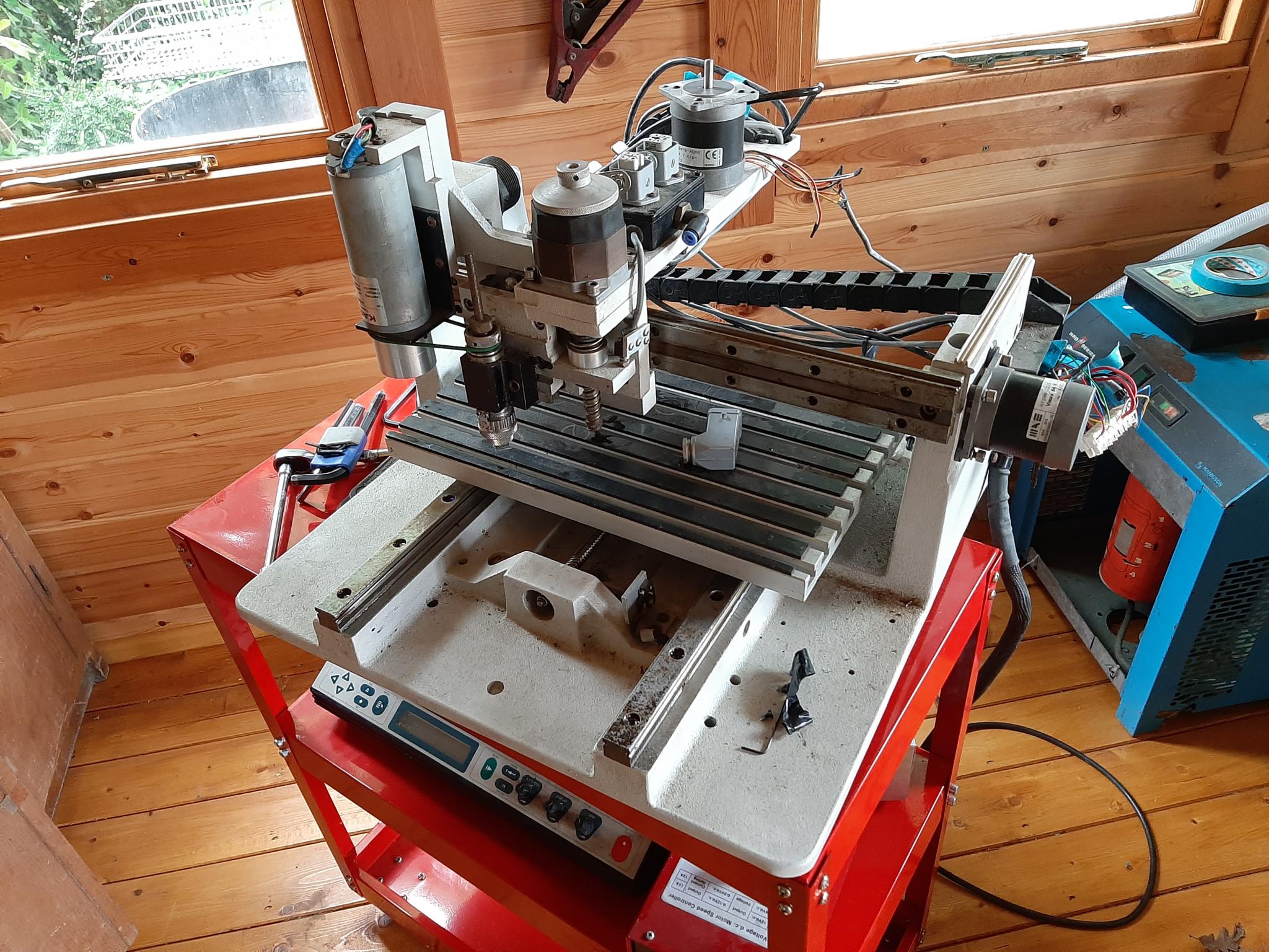 The machine has limit switches for the home position and a separate spindle controller that still works fine