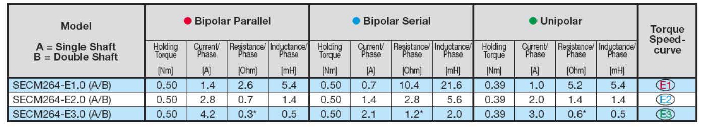 The engraver uses ECMotion SECM264-2.0A stepper motors and a GEFEG 24V 17.4A 12000rpm spindle. The steppers are rated at 2.8A in bipolar parallel mode. Details of the stepper specs are shown below. I'll be running the system via a Windows 7 laptop with USB2.