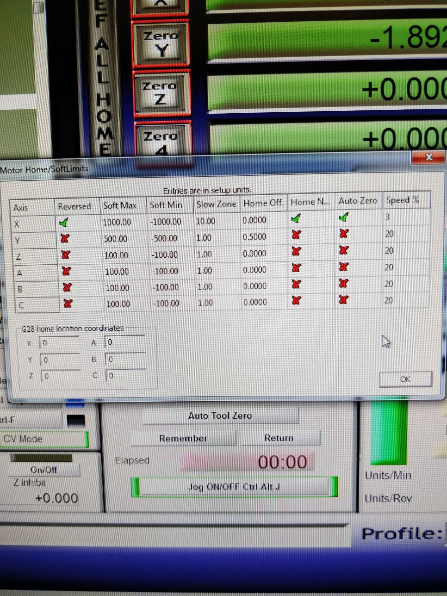 Jazz and folks, here's a couple of pictures - home limit screen and motor tuning screen - if that's got anything to do with it.