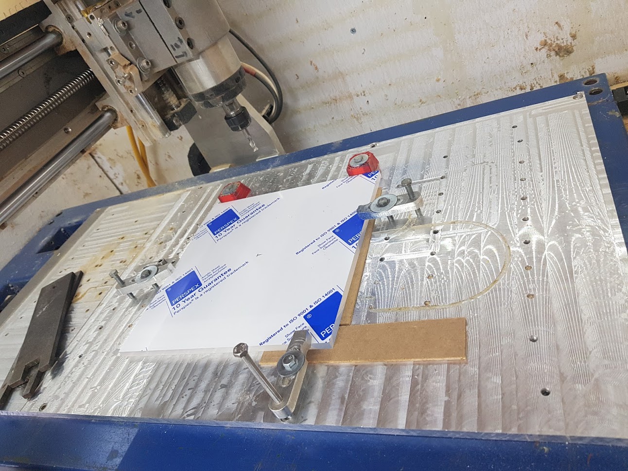 I do quite a lot of milling wood, composite woods and hardwoods. Most of the time you need not bother if you are working with mdf or an engineered one as they are perfectly flat most times. Raw unfinished wood, so band sawn or rough sawn generally yes face them either side if you are wanting clean finishes on either side. Generally when I do my hold down which I use 20mm x 50mm x 10mm aluminium bolt down clamps I milled I will mark out on my work piece the dimensions and then give myself a good 3 or 4 mm to spare. Being aluminium you can get away with the odd scrape instead of steel where you get no chance of getting away with such. My clamps are all sorts of shapes on the tips :whistle: