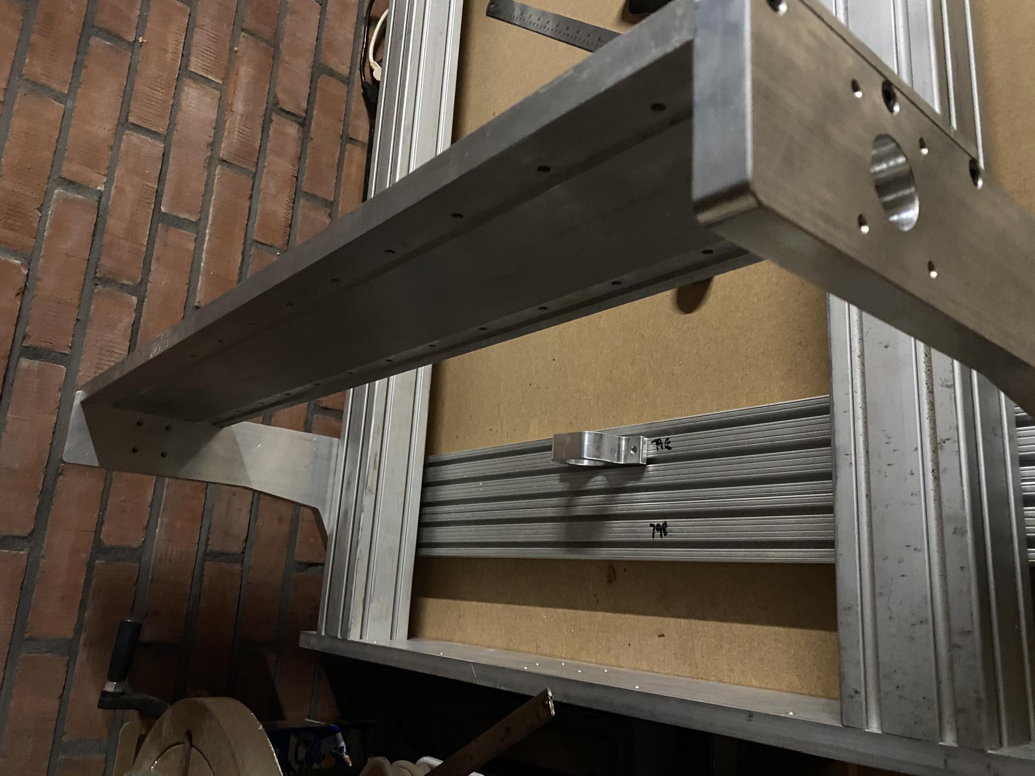 To spice things up and help draw some interest, here are a few shots of what I have - I've put together the gantry and base (just bolted it up, no loctite, no attempt to really level or line things up) just to get a sense of the size of the whole machine, and to get accurate measurements of the clearance between the 8080 profile and the gantry sides to figure out the required linear rail bits and pieces. Once I've got a little further down the road I may start a build log to document things for my future self and simply for fun, and to get some input if/when I get stuck along the way.