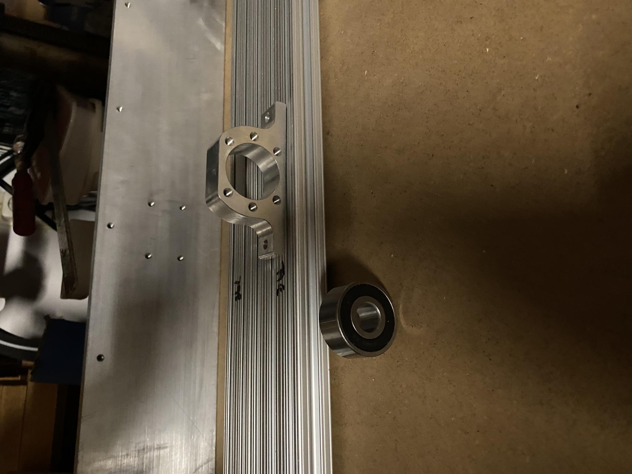 The ballscrew mounts and measures (and the two big end bearings that I did receive) suggest the machine was designed for a 25mm ballscrew, though I'm not sure what pitch would be appropriate. From what I gather 2510 was the original design spec but I can't really confirm. I'm not really sure about the pros and cons of a 2505 vs 2510 for a CNC gantry router this size (only 1200mm travel)