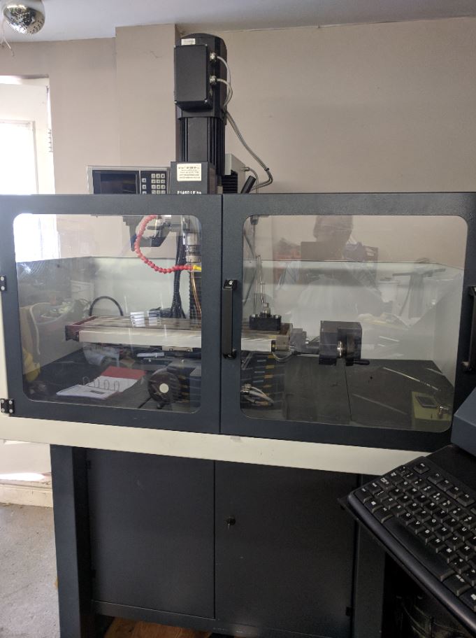 It is complete with the Fagor DRO, safety surround and coolant system, a fourth axis, base cabinet, Isear 32 collet set, Isear 16 collet set, tool holders, original PC, Magnum Vice, 3 jaw chuck etc.