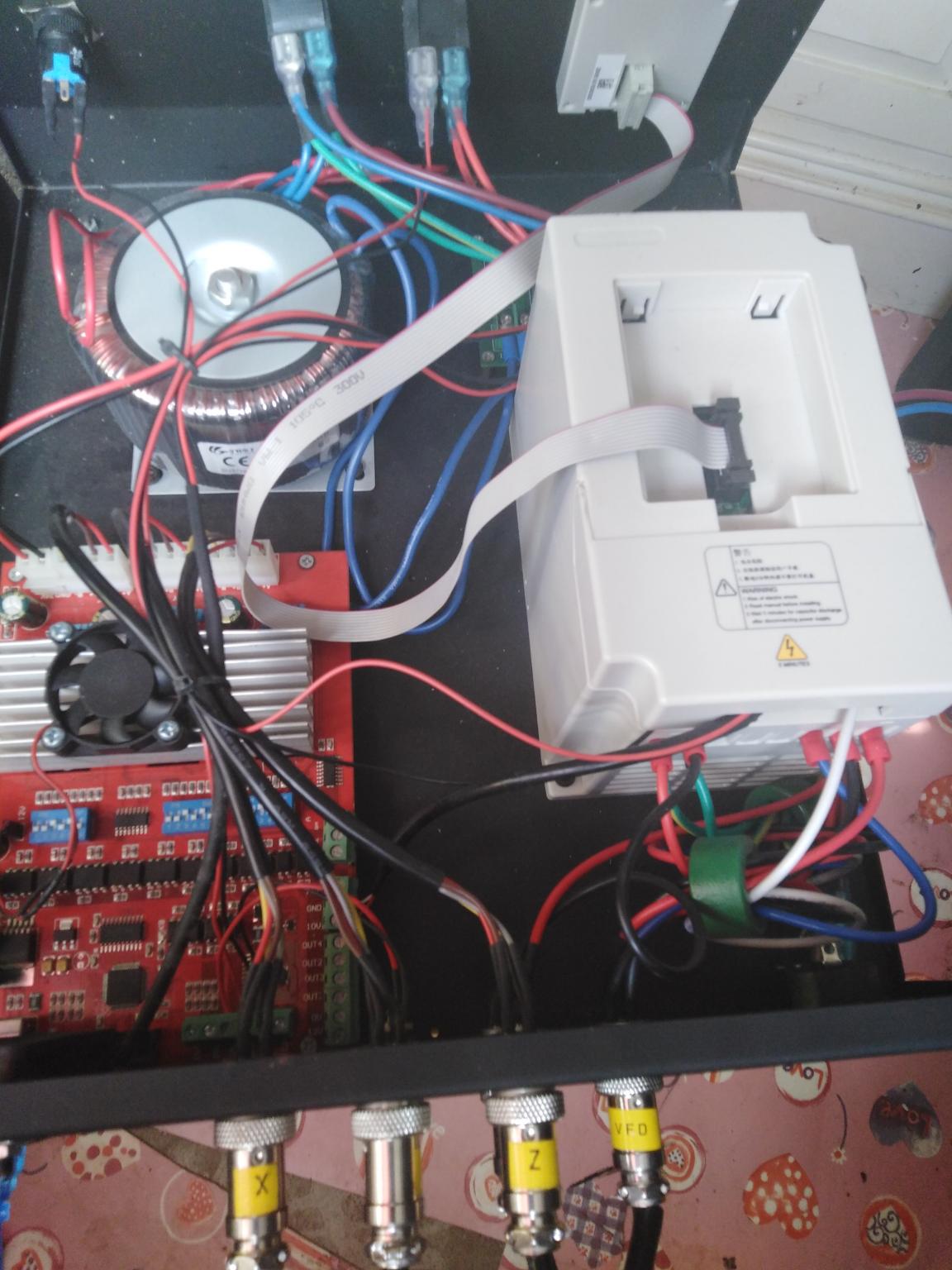 Are you able to, or otherwise unable to open the enclosure for the VFD - there's more in that enclosure than just the VFD, but what is very important to the understanding of this is any interconnect from the internal (USB?) BoB and the VFD controller. That tells us if you have a Mach3-able solution or whether it's manual.