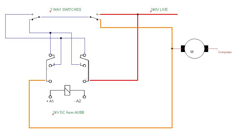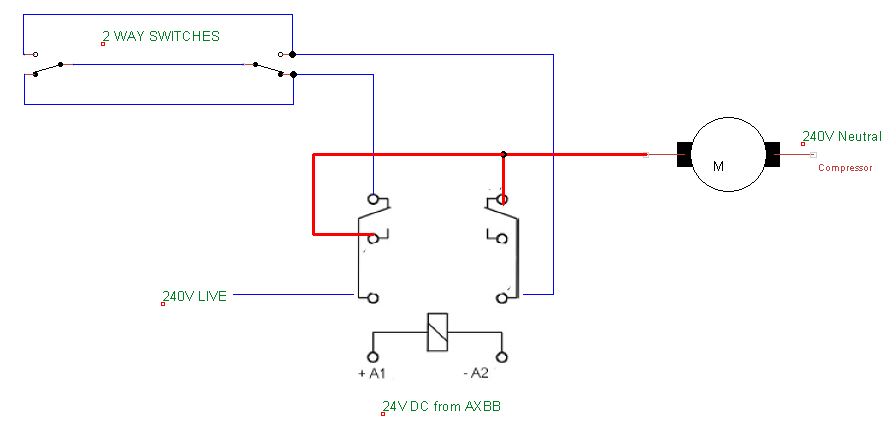 Regarding the compressor being left on I already have a signal lamp which comes on when the compressor is powered - this was put in before the 2 way switches as the compressor was often left running! The lamp is visible from our in workshop CCTV camera and we have a networked smart switch so the compressor can be turned off remotely