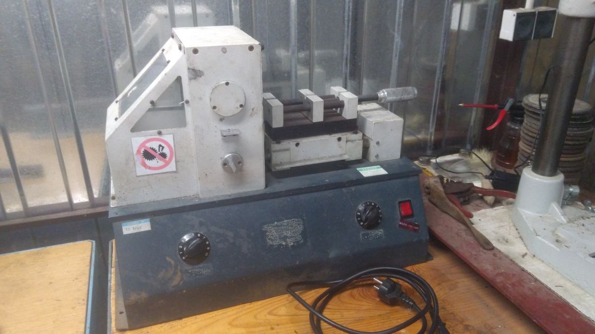 To me it looks like a test lab type machine for grooving material samples, prior to further testing.