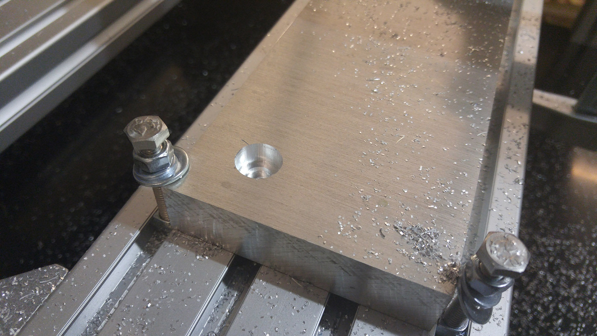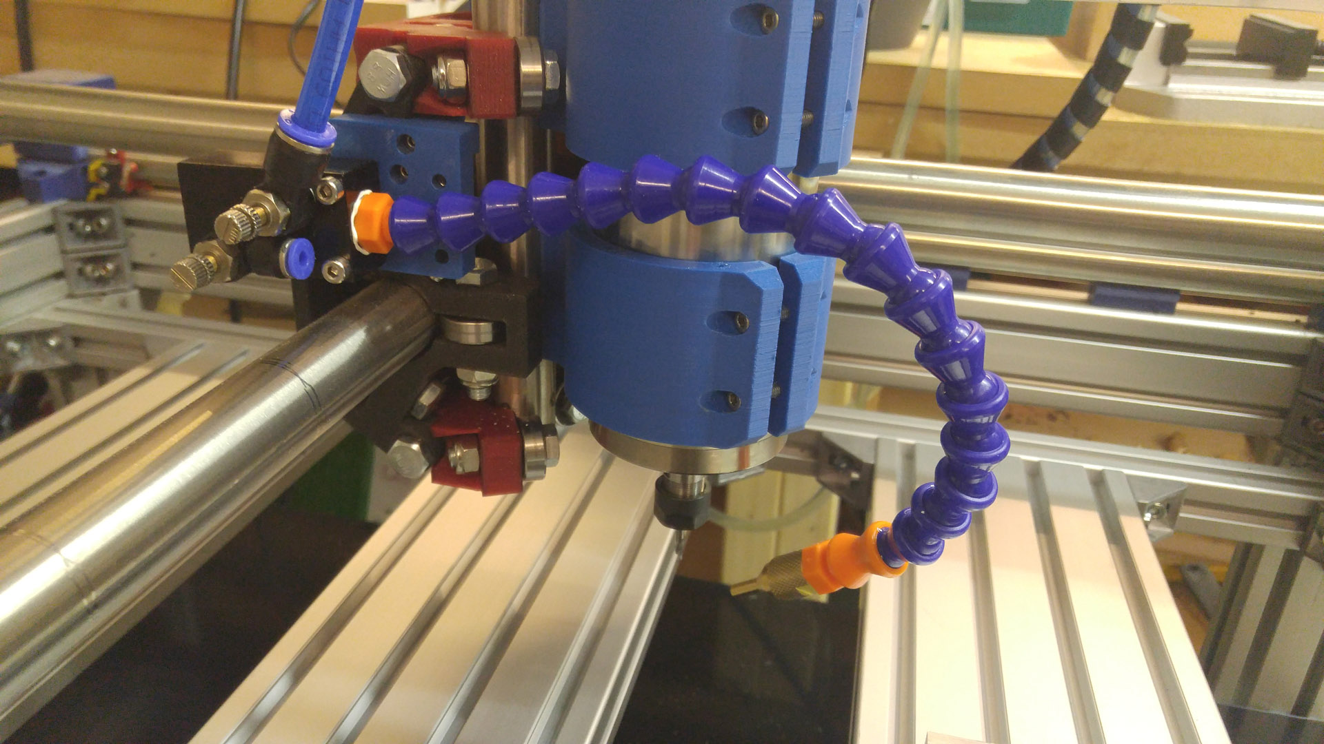 The whole process was really fun, and I could now do reasonably fast/deep cuts (using an adaptive toolpath) in soft woods, plywood, hard pastics (with an air blast)