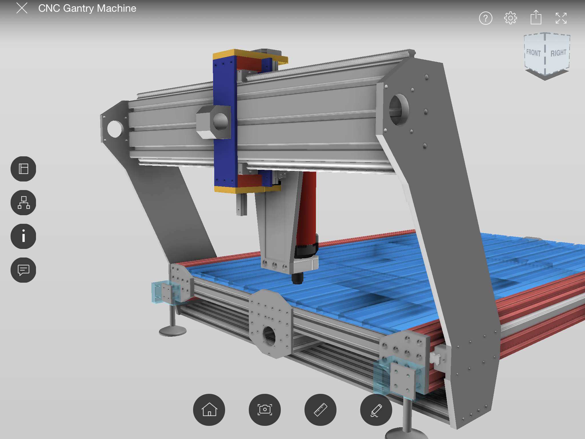 Thanks for the feedback. I’m still learning Fusion 360 so the model is missing some components and the z axis rail has a mind of its own!. The philosophy behind the machine it to make a table top machine from readily available components, with the fewest parts that will fit in my small workshop. (Cost vs rigidity vs complexity). I was hoping that since the Kress spindle is relatively light and forces low I might get away with a pair of blocks. The gantry height was based on my need to cut parts on my Stepcraft (about 100 mm). The decision to use twin y axis ball screws or single again are based on cost/complexity.