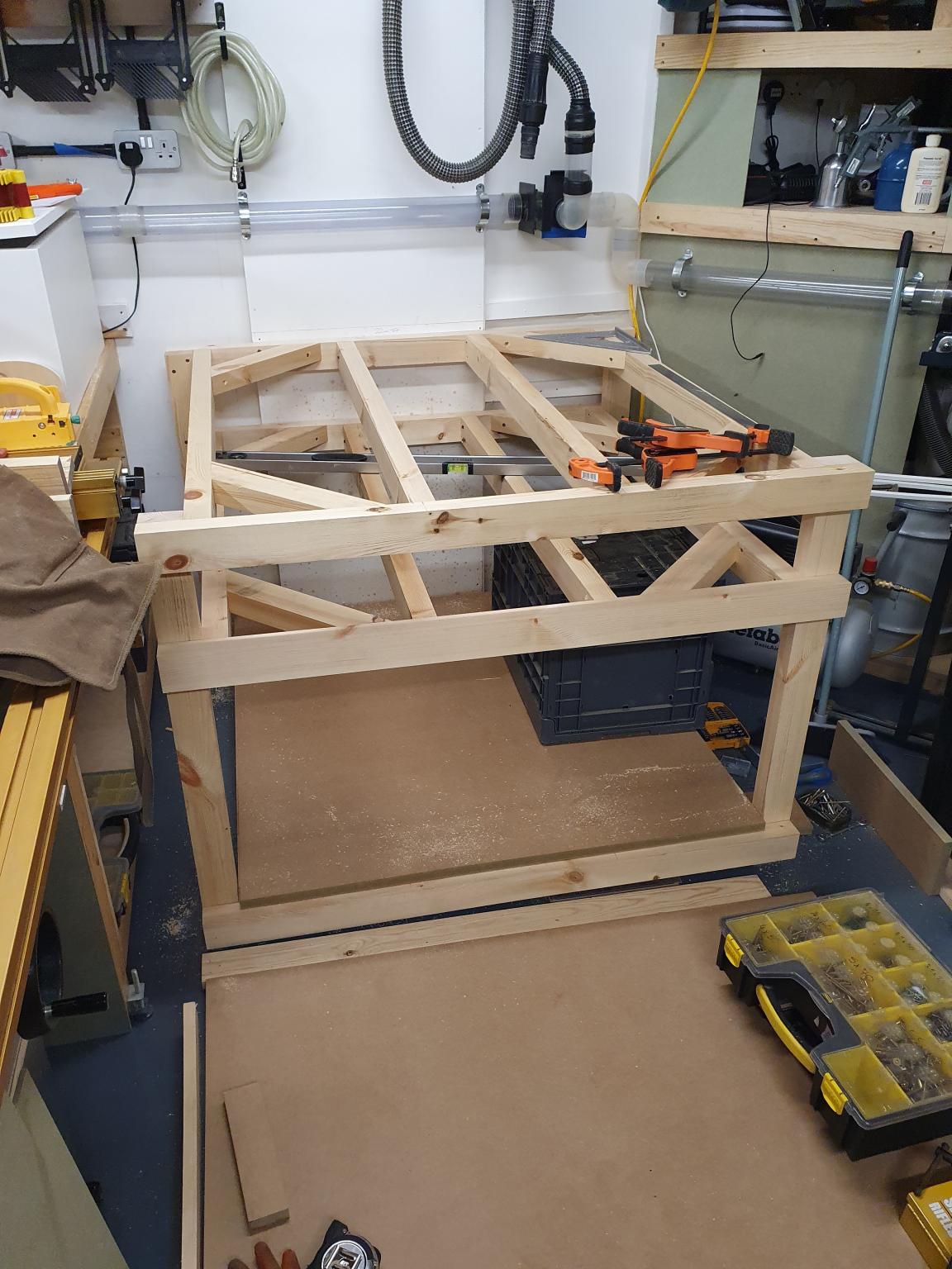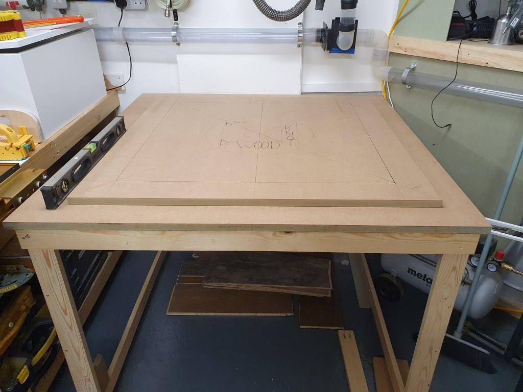 So a half sheet of 22mm MR MDF on a mock up frame to get the feel for it.
